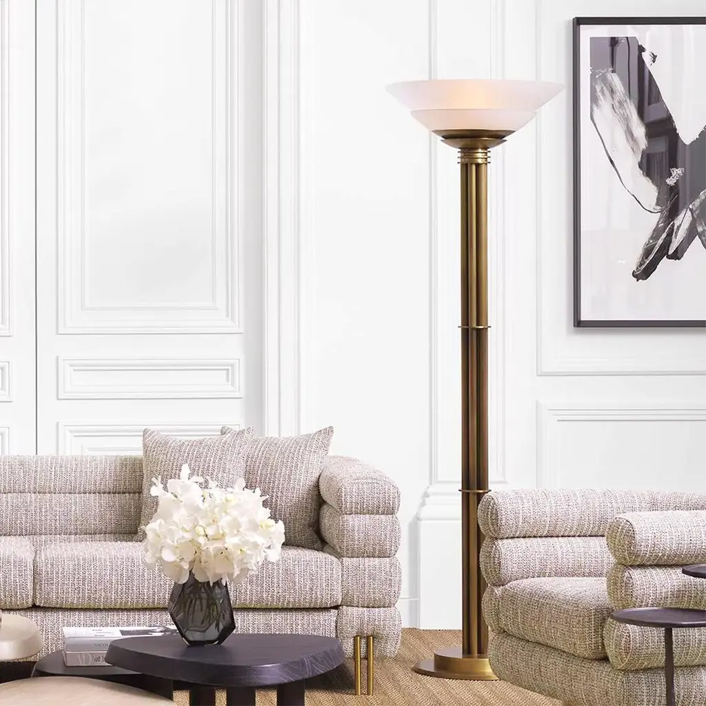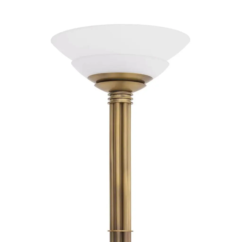 Floor lamp Chianto brass all in brass and iron in antique finishwith frosted glass shade. 1 Bulb, lamp holder type E27, 100 Watt,200-240 volt. Bulb not included.