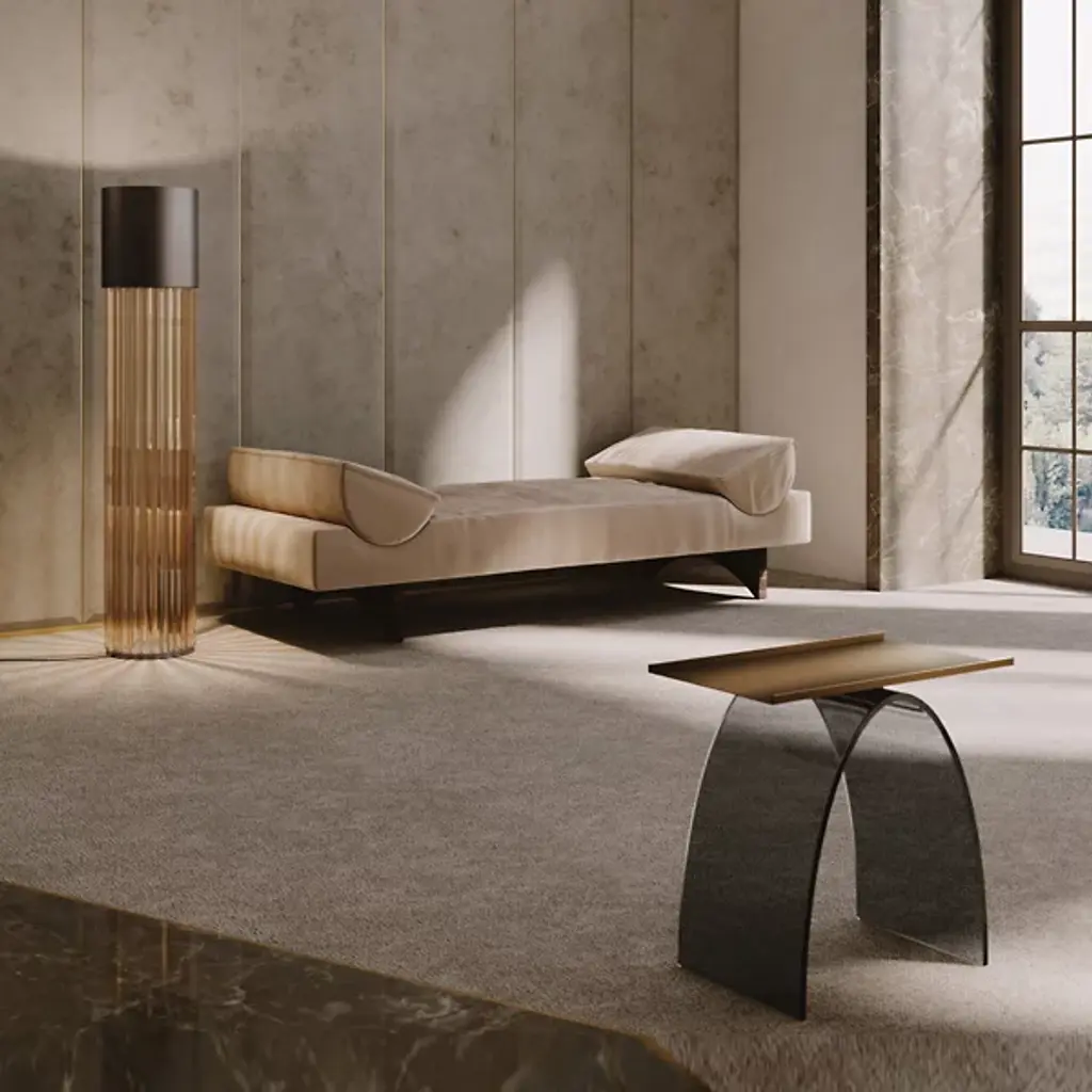 The Chic Floor Lamp from Venicem lives up to its name. It boasts a streamlined cylindrical shape. It is composed of fine glass and bronze. Chic is crafted in Italy and exudes a high caliber of craftsmanship. An included on/off fixture switch allows for easy operation. Powered by LEDs, you receive ample illumination that brings a brilliant glow to your living space. Radial geometries and Murano trihedrons accentuate Chic’s contemporary look.
