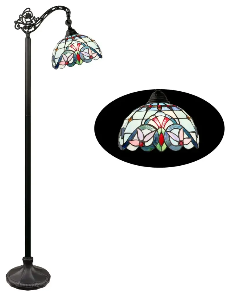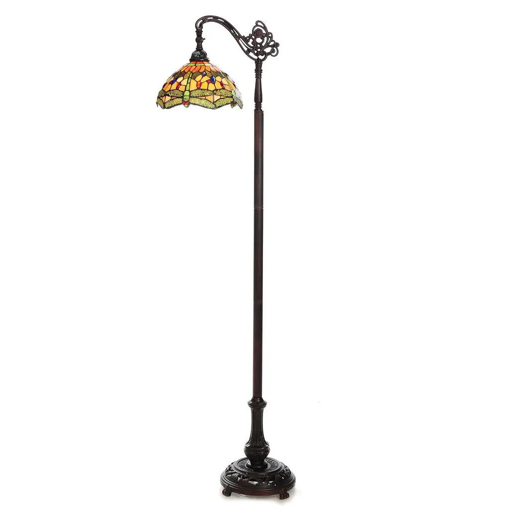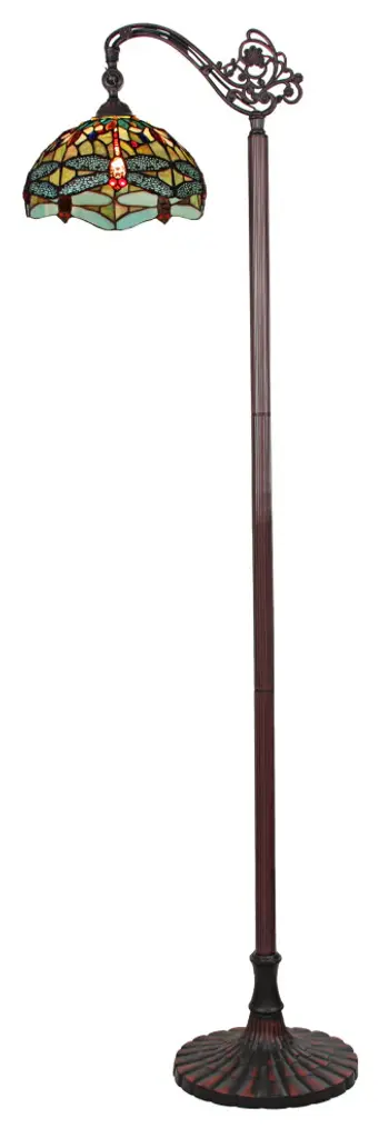 This Dragonfly design 1-light Tiffany-style reading-style floor lamp would be a perfect fit in a bedroom, office, and living room! The shade is hand-crafted, using the same methods developed by Louis Comfort Tiffany in the early 1900s. This process entails using 195 hand-cut stained art glass pieces and 60 glass beads, each wrapped in fine copper foil and soldered together at extremely high temperatures to form each unique piece. The exact size to the nearest inch may vary, and the exact color of each glass piece may vary due to each piece being hand-crafted. The first image is with the light shining through, the second image is with no light. Dry-listed and recommended for an indoor setting.