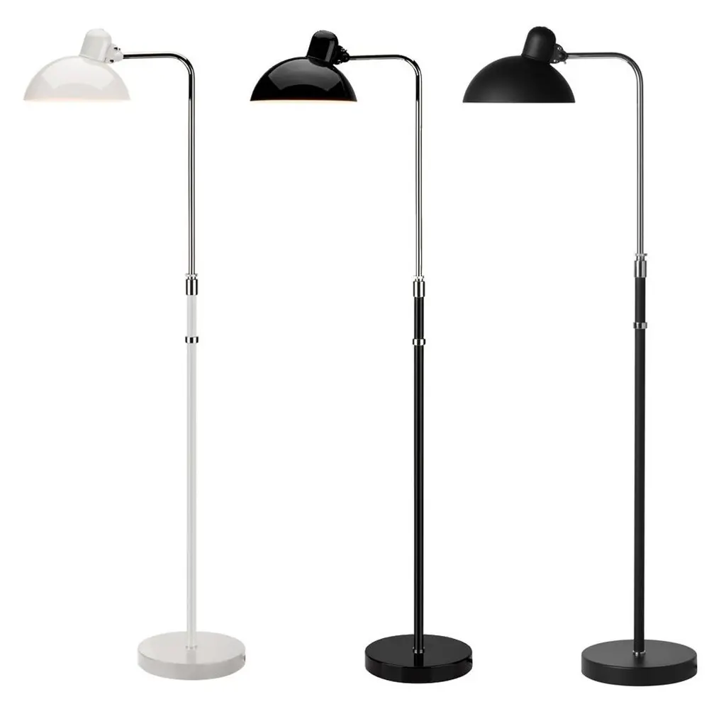 Christian Dell 'Kaiser Idell 6580-F' Floor Lamp for Fritz Hansen in Gloss White. Established in 1872, Fritz Hansen has become synonymous with legendary Danish design. Combining timeless craftsmanship with an emphasis on sustainability, the brand’s re-editions of iconic pieces from such Danish Modern greats as Arne Jacobsen, Hans J. Wegner, and Vico Magistretti pay homage to the originals while thoughtfully incorporating innovation and responsibly sourced materials.The renowned KAISER idell lamp, first produced in 1936, is characterized by Christian Dell’s ability to create elegant design with the basic hallmarks of Modernism: geometric shapes. Today, KAISER idell is widely recognized as a symbol of noble Bauhaus design. With its artful balance of an asymmetrical shade, a slender stem and an adjustable stem and shade for directional lighting, the 6580-F floor lamp provides ambient and task lighting in Dell’s signature style. Manufactured using the finest materials available to the exacting standards of Fritz Hansen. Price per item. Available in unlimited quantities in choice of glossy white, glossy black or matte black. Also available as a pendant, table lamp or as a non-adjustsble floor lamp (model 6556-F) - please see our separate listings. This listing is for the Kaiser Idell 6580-F floor lamp in gloss white.In stock lead time of 1-3 weeks. Out of stock can add an additional 8 weeks or more. Please note that lead times, cost and inventory availability are subject to change without notice. Please inquire for current lead times prior to placing time sensitive orders.Accommodates 1x 60W equivalent standard medium base (e26) LED bulb. Ships with 79" black silicone cord with integrated foot switch. UL listed.Made to order. All sales final.
