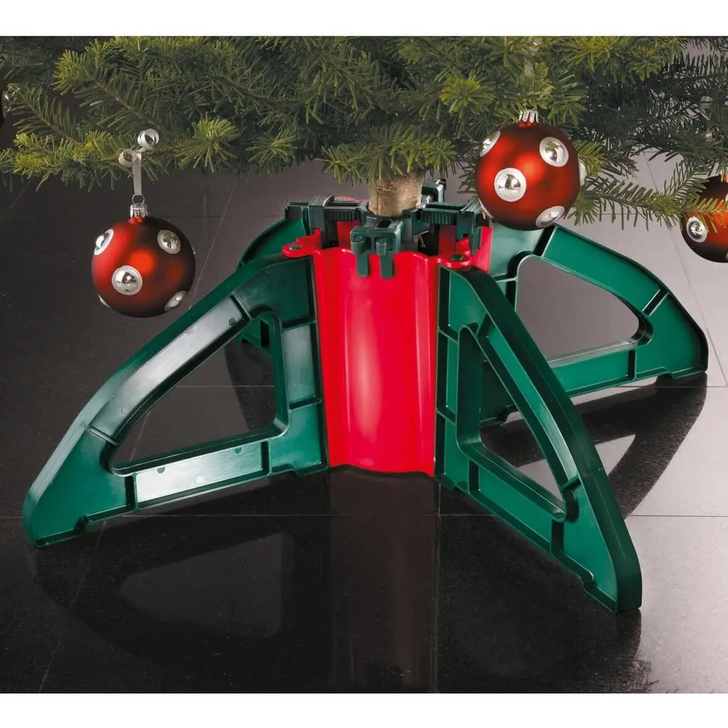 Christmas Tree Stand With Clamping System - For Live Trees Up To 10' - Red - Red