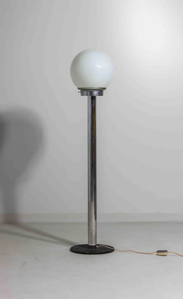 Chrome Floor Lamp With Large Opaline Globe, Italy 1970s