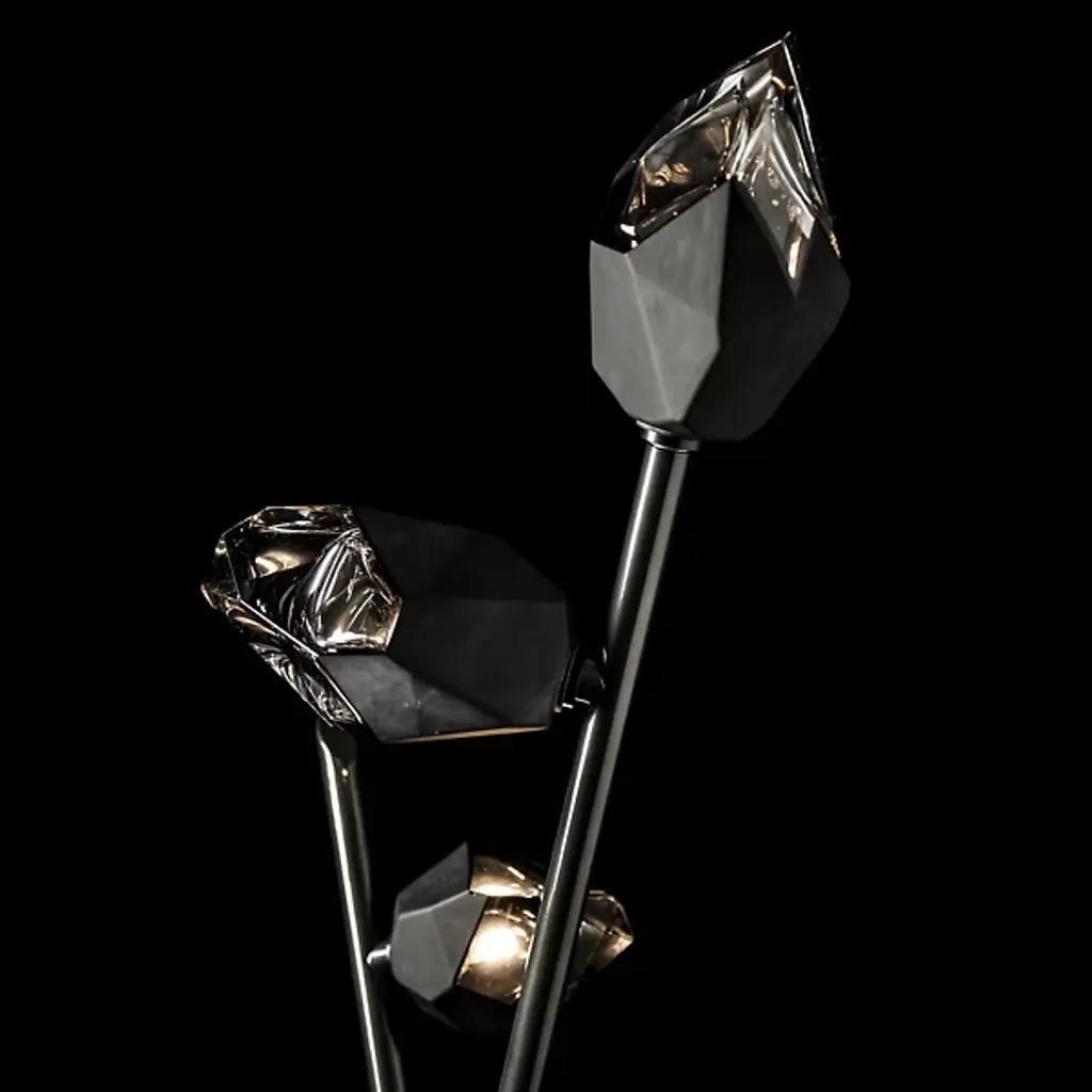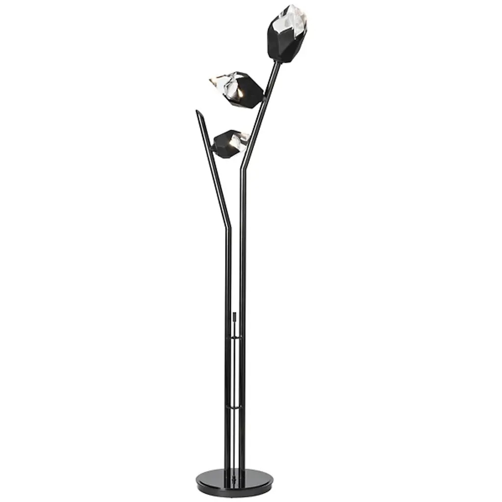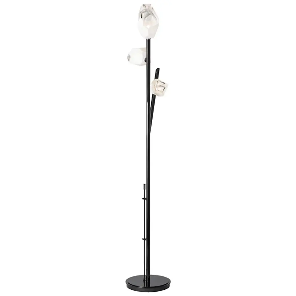 Let your artful design taste emerge with the Chrysalis Floor Lamp by Hubbardton Forge as a focal point. Like diamonds from lumps of coal, multi-faceted glass sparkles as it appears to break through opaque glass shells. Each thick glass element is blown by hand to create the desired artistic effect before being set atop the tall, angular metal stems. The brightness of the sparkle is easily controlled via a dimmer rod extending up from the base. Designed by Paul Marr-Hilliard and David Kitts.