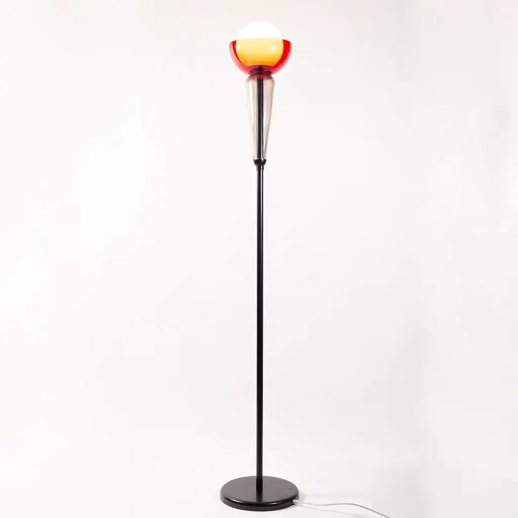 CIoppo floor lamp designed for Bottega Venezia by designer Riccardo Fasolo and made entirely by hand from blown glass. The products are handmade in Venice and accompanied by a certificate of Origin and Authenticity, installation and assembly instructions. E14 Led bulb. The floor lamp is in smoked and red glass with black nickel finish. Available in different colours and finishes. Please ask the Conicerge for other informations.