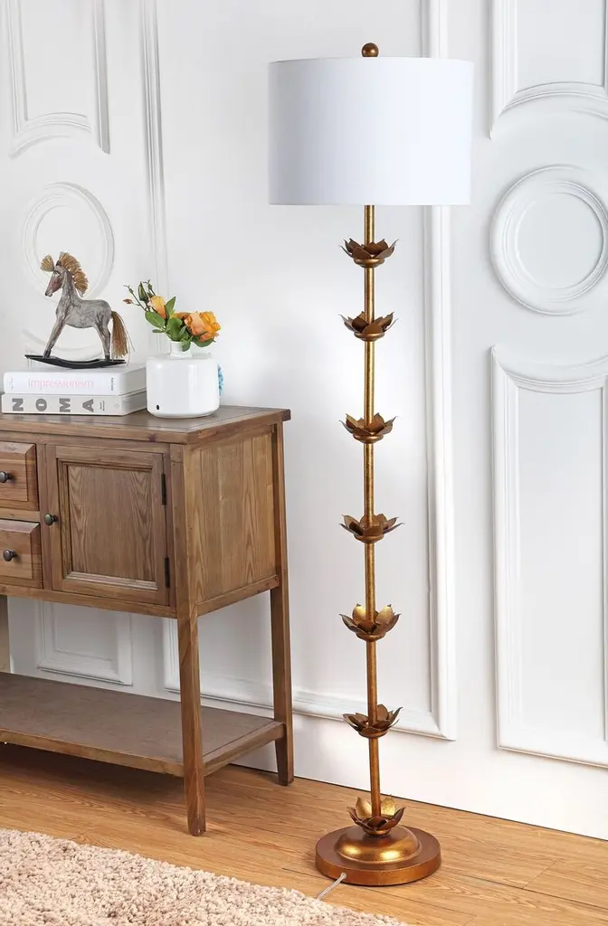 Finely sculpted leaves and an antiqued gold finish give this floor lamp both organic allure and classic elegance.