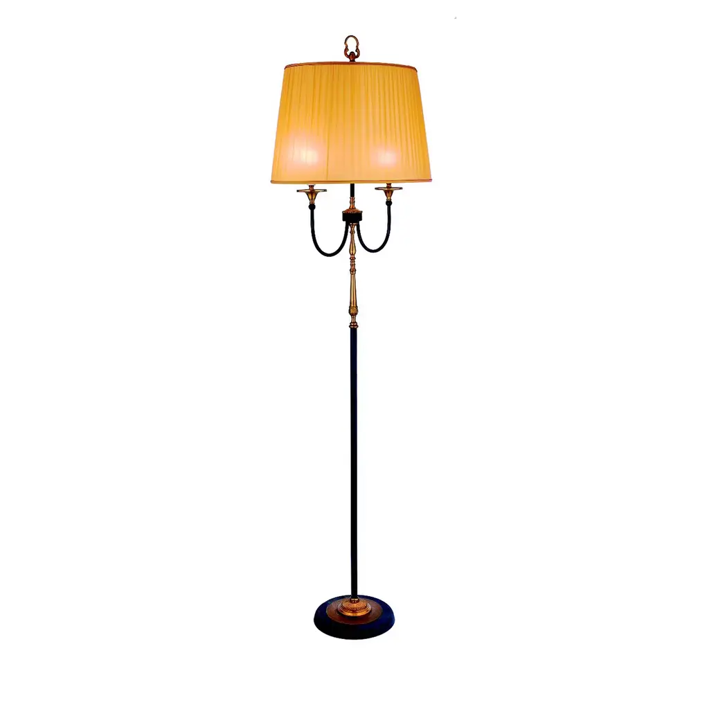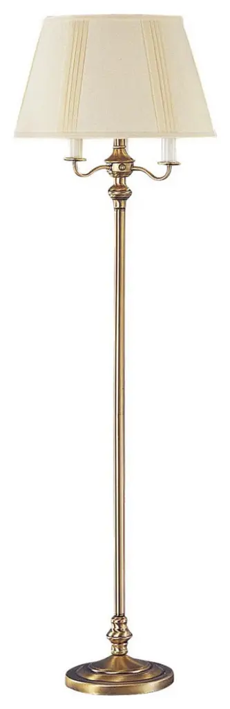 Clara two lights solid brass floor lamp with lampshade.The Classic collection includes elegant and refined floor lamps, compliant with the most stringent safety regulations in force, suitable for use in both residential and hospitality areas. A unique style reminiscent of that of Tuscan villas, known throughout the world for their innate beauty.2 x E14Max 28 Watt Alog. - Tot. 56 Watt.230 VoltsClasse I, Class I