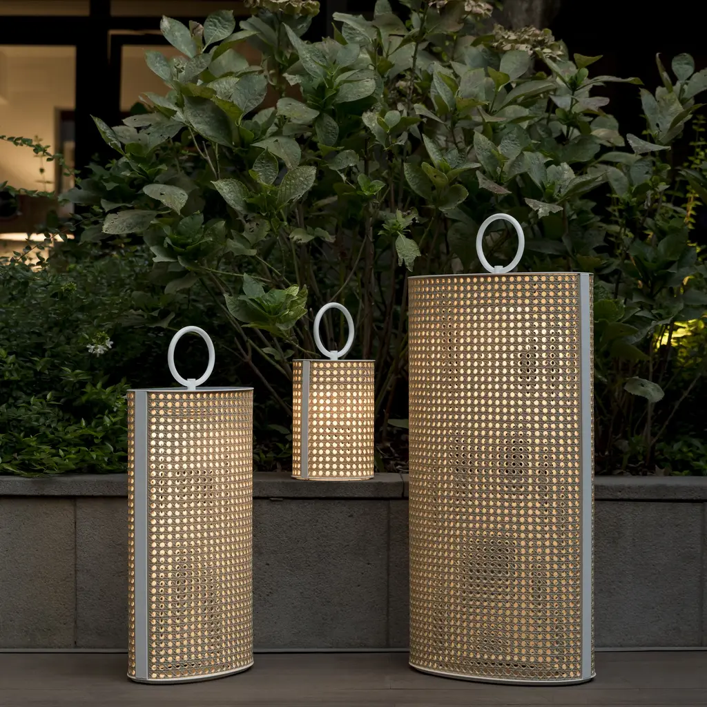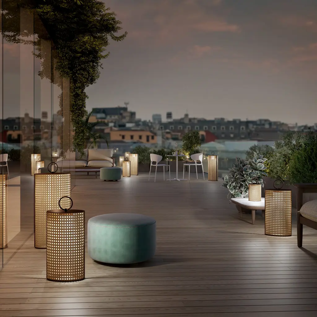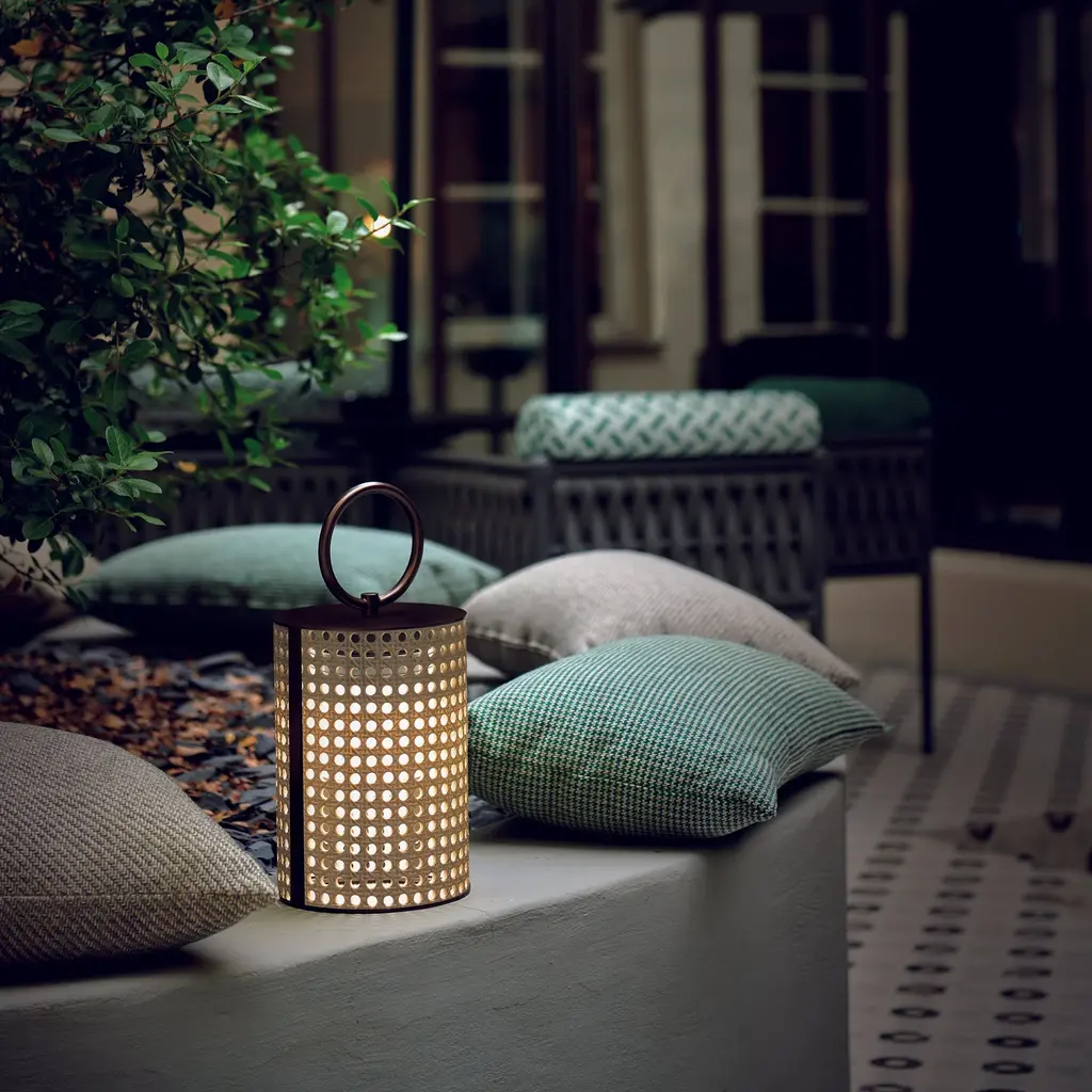 The Clara Portable Outdoor LED Floor Lamp from Contardi is a modern take on the classic lantern. Featuring a rechargeable battery with up to 8 hours of life, it offers versatile and dynamic lighting options for any environment. Available in white or bronze with a Vienna straw-effect resin diffuser, it brings indoor luxury outside while creating ambient illumination in any setting. Highlights