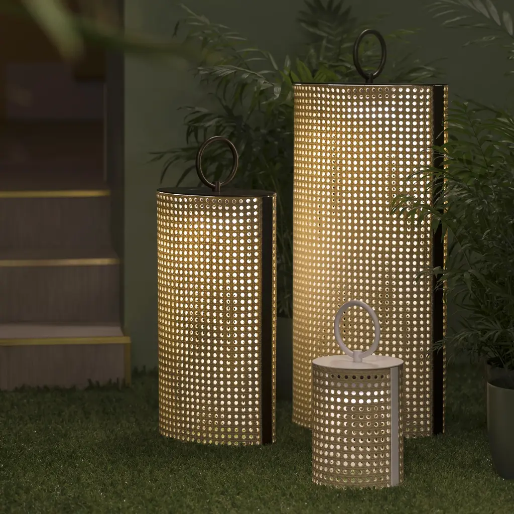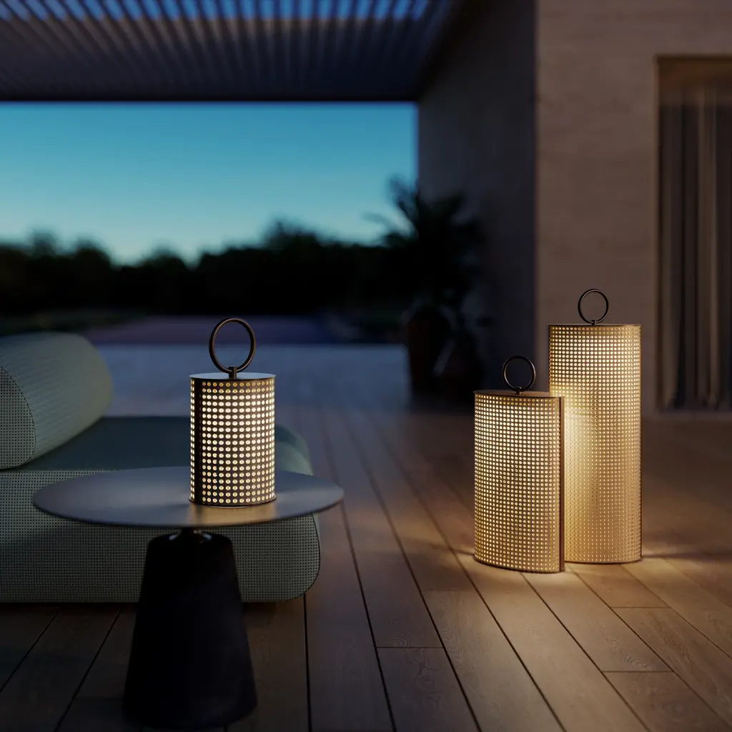 The Clara Portable Outdoor LED Floor Lamp from Contardi is a modern take on the classic lantern. Featuring a rechargeable battery with up to 8 hours of life, it offers versatile and dynamic lighting options for any environment. Available in white or bronze with a Vienna straw-effect resin diffuser, it brings indoor luxury outside while creating ambient illumination in any setting. Highlights