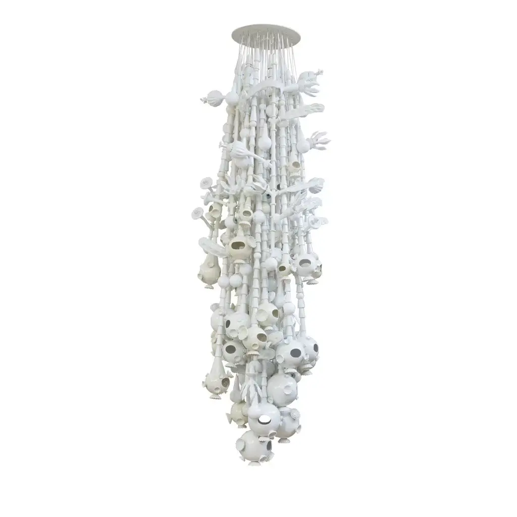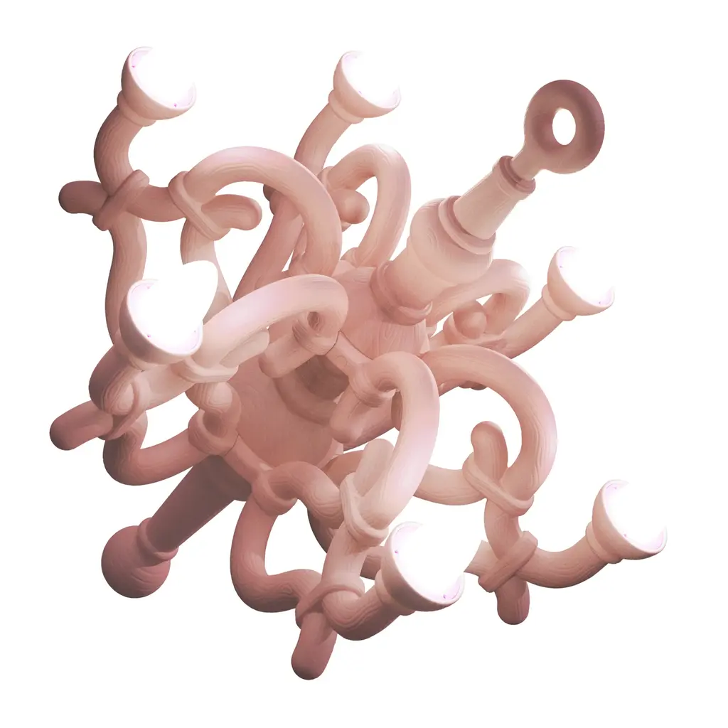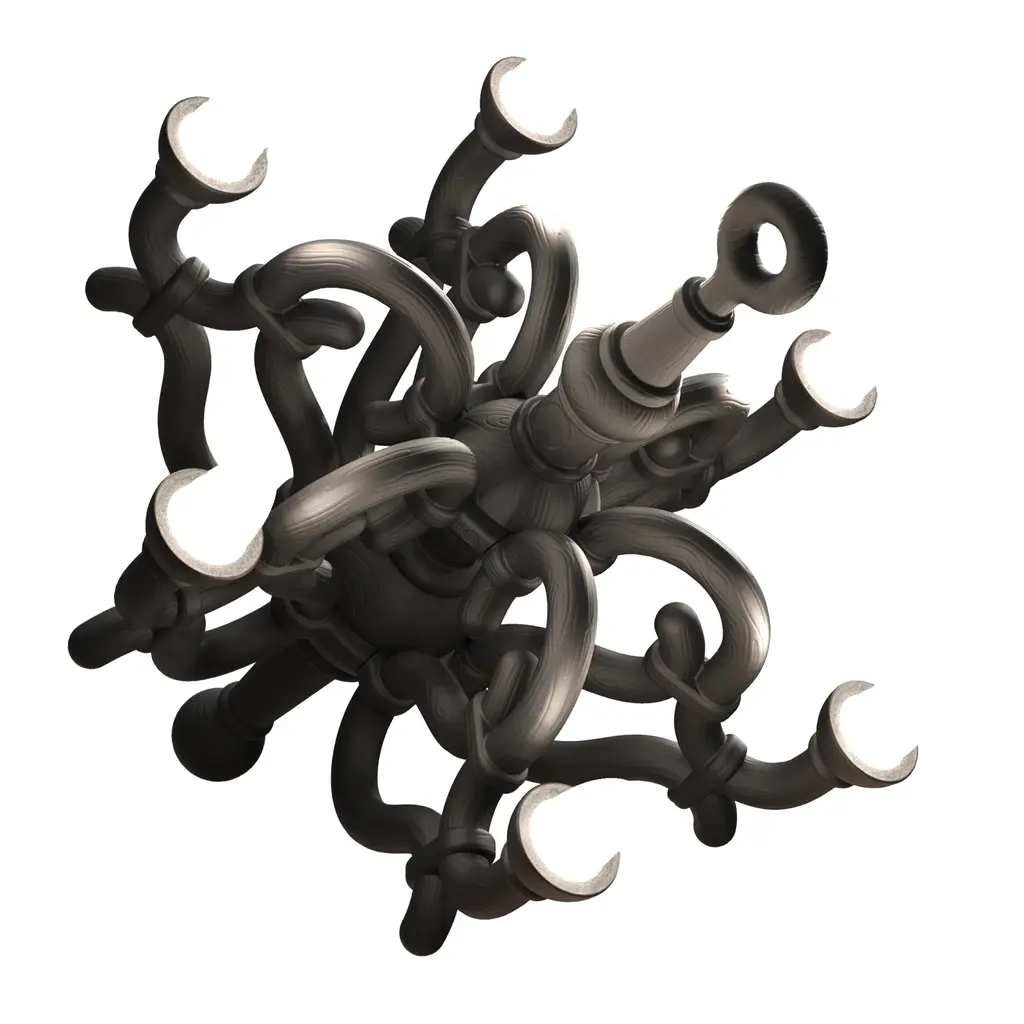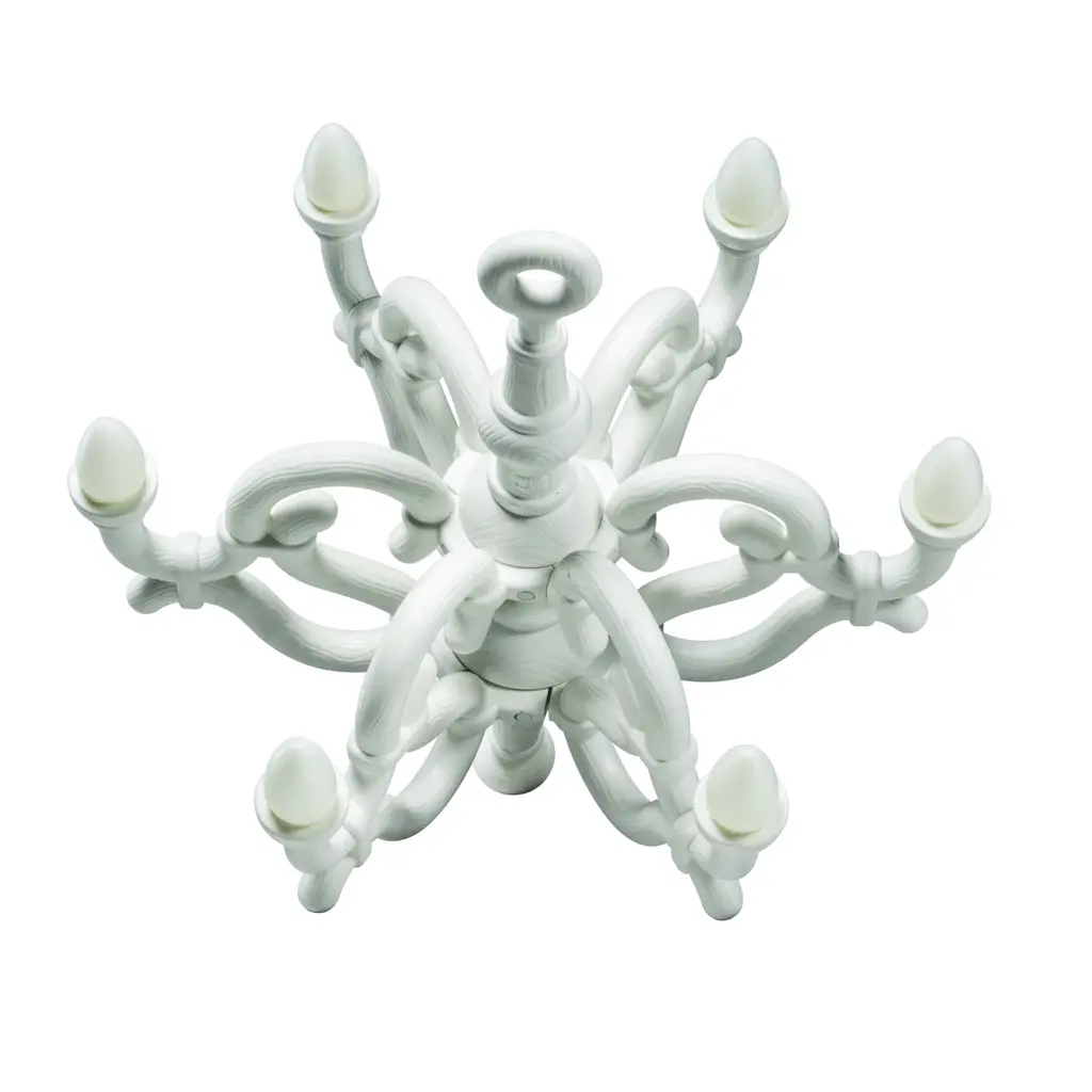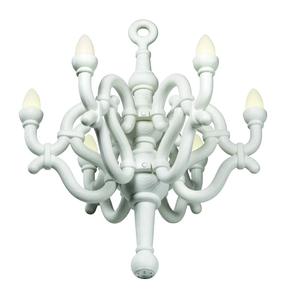 Introducing the Qeeboo Fallen Chandelier, a wireless rechargeable lamp designed by Studio Job. With classic 19th century Thonet curves, it adds elegance and sophistication to any indoor or outdoor environment. Control it from afar with the remote and let it be the timeless centerpiece of your space.