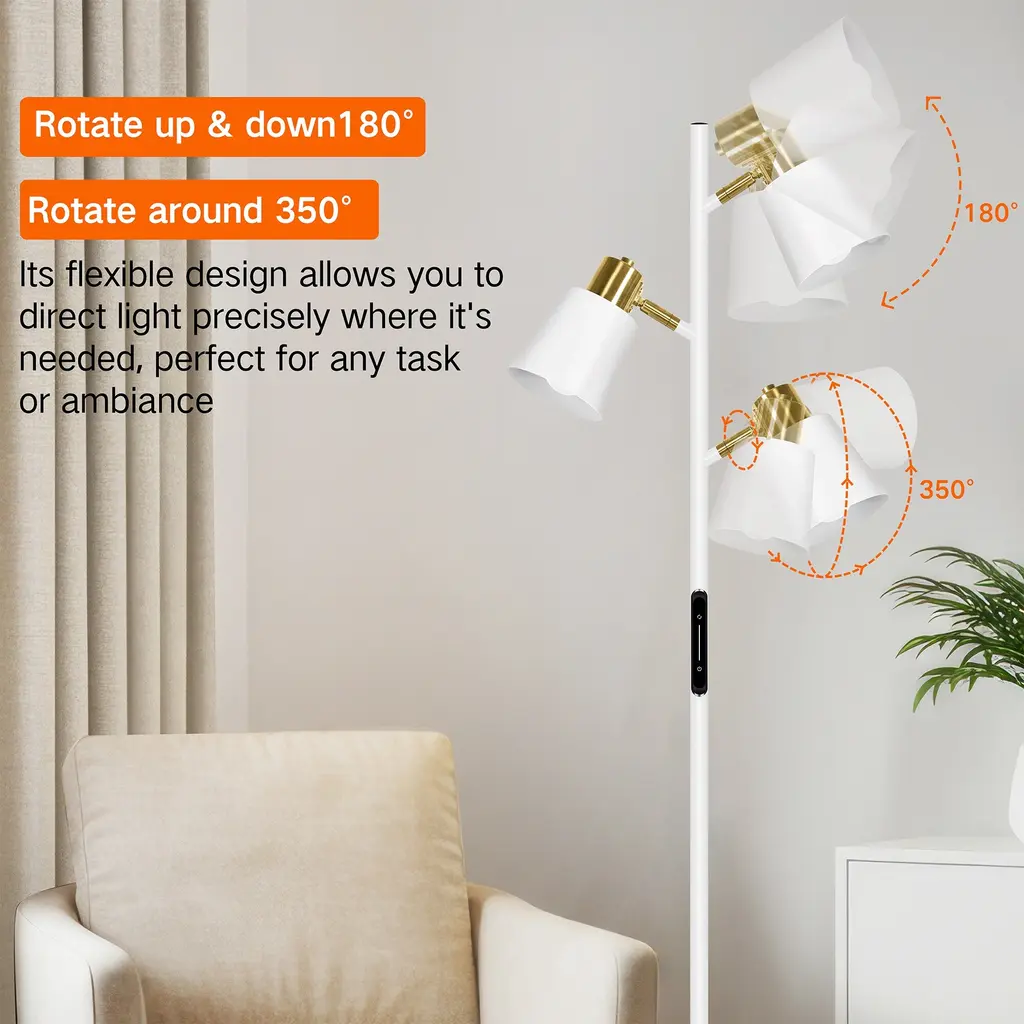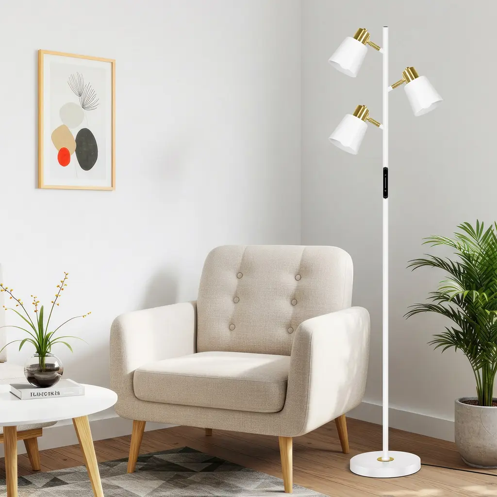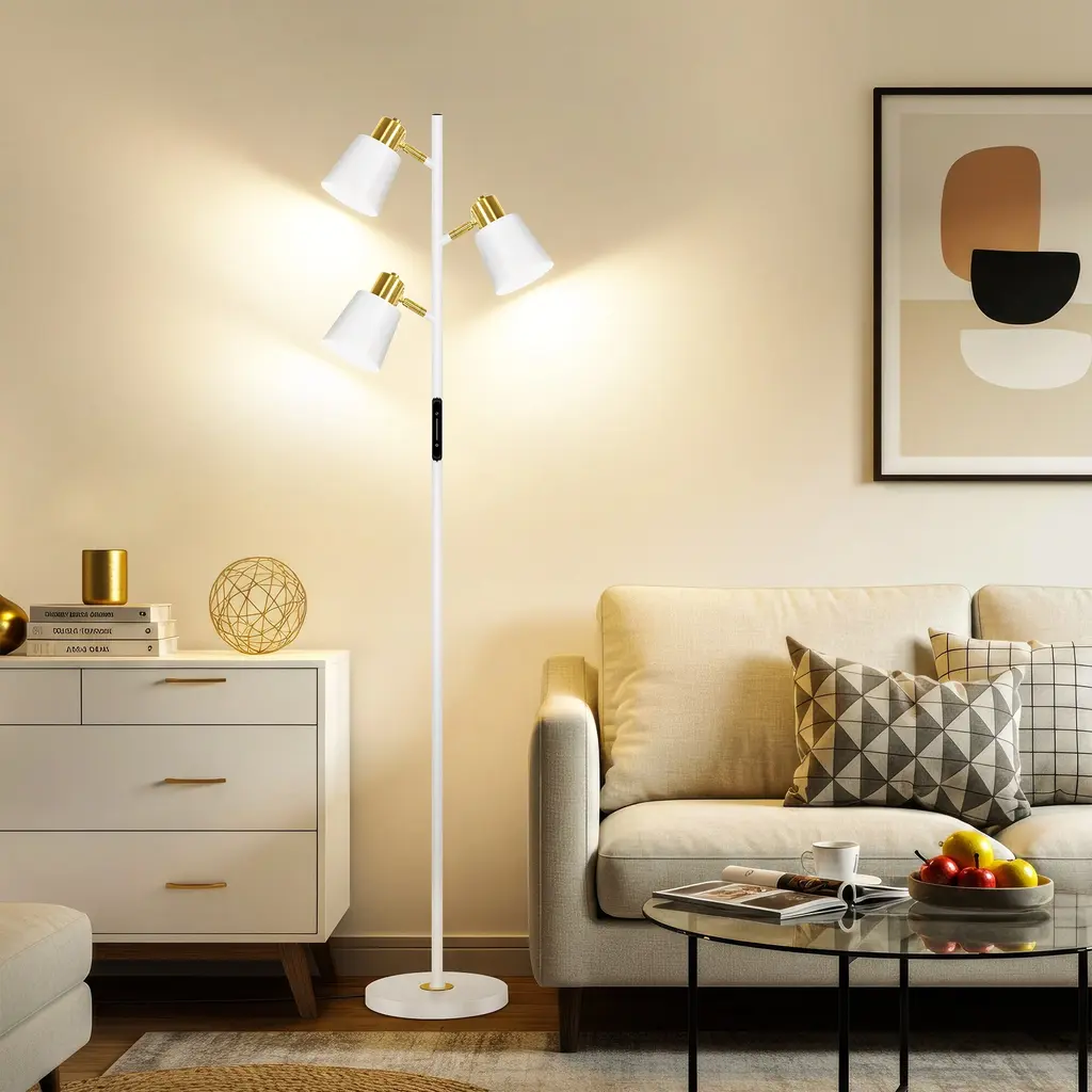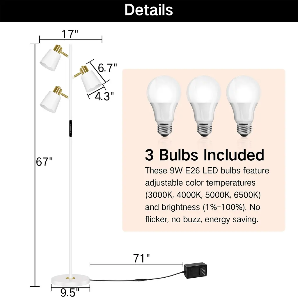 The 3-Head LED Floor Lamp with Slatted Iron Shade offers an ideal combination of style, functionality, and energy efficiency for your home or office. Featuring 3 adjustable heads, this lamp provides customizable lighting with 3 different color temperatures (3000K, 4000K, 5000K, 6500K) and a dimmable range from 1% to 100%. The integrated touch slider and remote control make it easy to adjust both brightness and color temperature to suit any task or mood. With a maximum power output of 36W and 900 lumens per head, this lamp ensures a bright, warm glow that is gentle on the eyes and perfect for long hours of use. The energy-efficient LED bulbs have a lifespan of up to 50,000 hours, saving you money on energy bills while reducing the need for frequent bulb replacements. The sleek iron construction and minimalistic design fit seamlessly into any modern or industrial-style decor. With a sturdy base weighing 2.5kg, this lamp is stable and won't tip over, making it ideal for homes with pets or children. Its built-in 1-hour timer helps you wind down for the night, and its memory function recalls the last settings for your convenience. Features 🌟