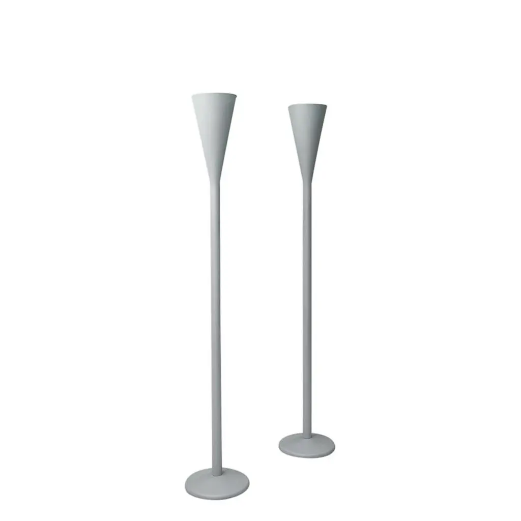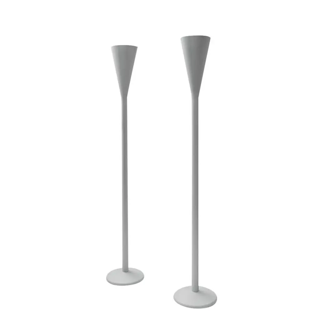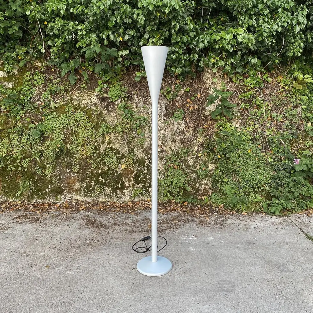 Please note that the price is for 1 lamp.Floor lamp designed by Pietro Chiesa in 1933 and produced by Fontana Arte. The Luminator was for its time a groundbreaking design, and considered to be the first indirect light floor lamp in design history.The lamp is completely built up in metal, consisting of a stem that widens into a cone. The color can be best described as a very light grey, with a hint of blue. The finish is not smooth, but has a relief to it.Light source: E14 Screw-in halogen or incandescent bulb. Can be used on the US electric grid after a plug change (we can do this for you!).Origination: Italy, 1980s. Most lamps carry the Fontana Arte label.Condition: Very good, minor signs of use on the metal finish as per pictures. We have replaced the dimmer and part of the wiring for safety reasons.Approximate dimensions:Height: 185 cmDiameter: 30 cmWe have four in total available, price per piece.