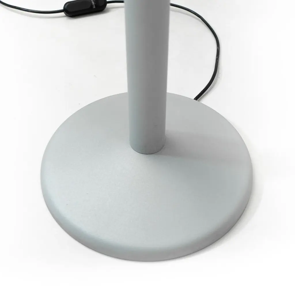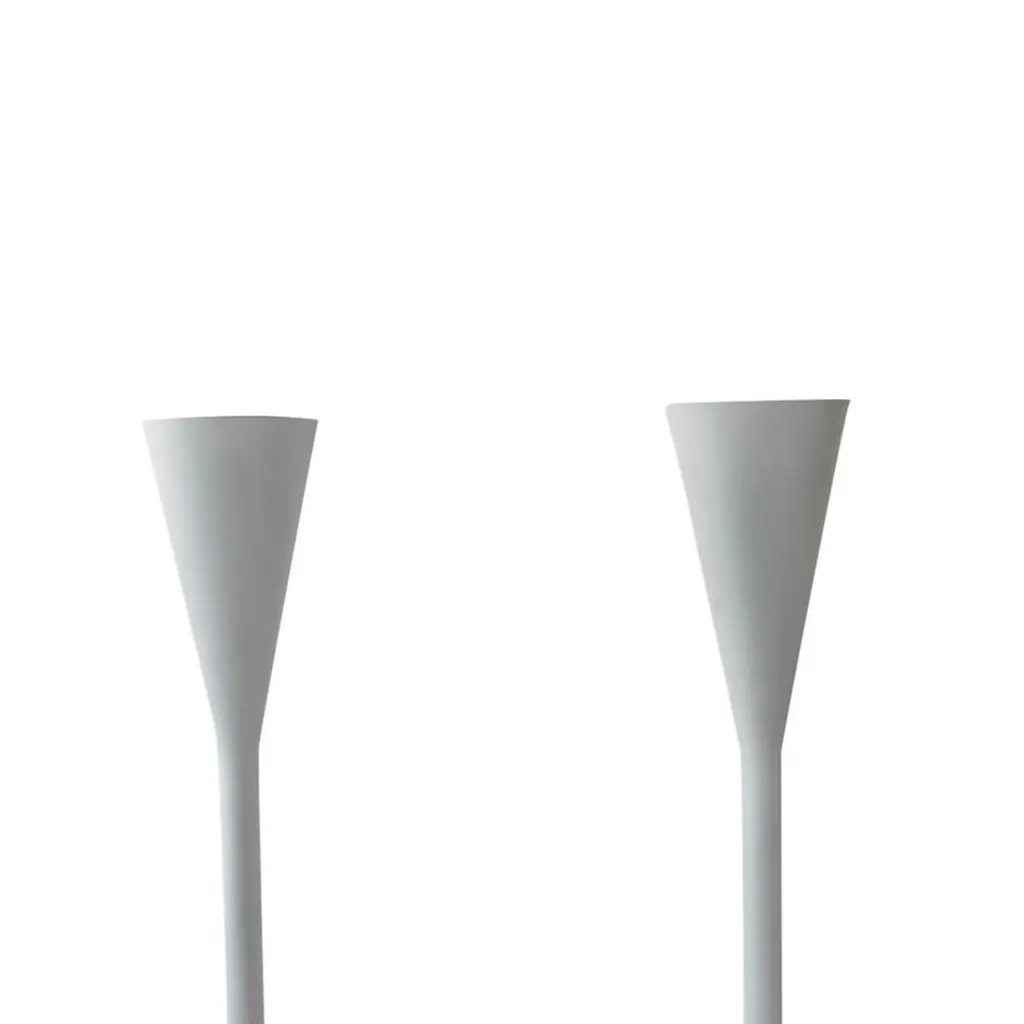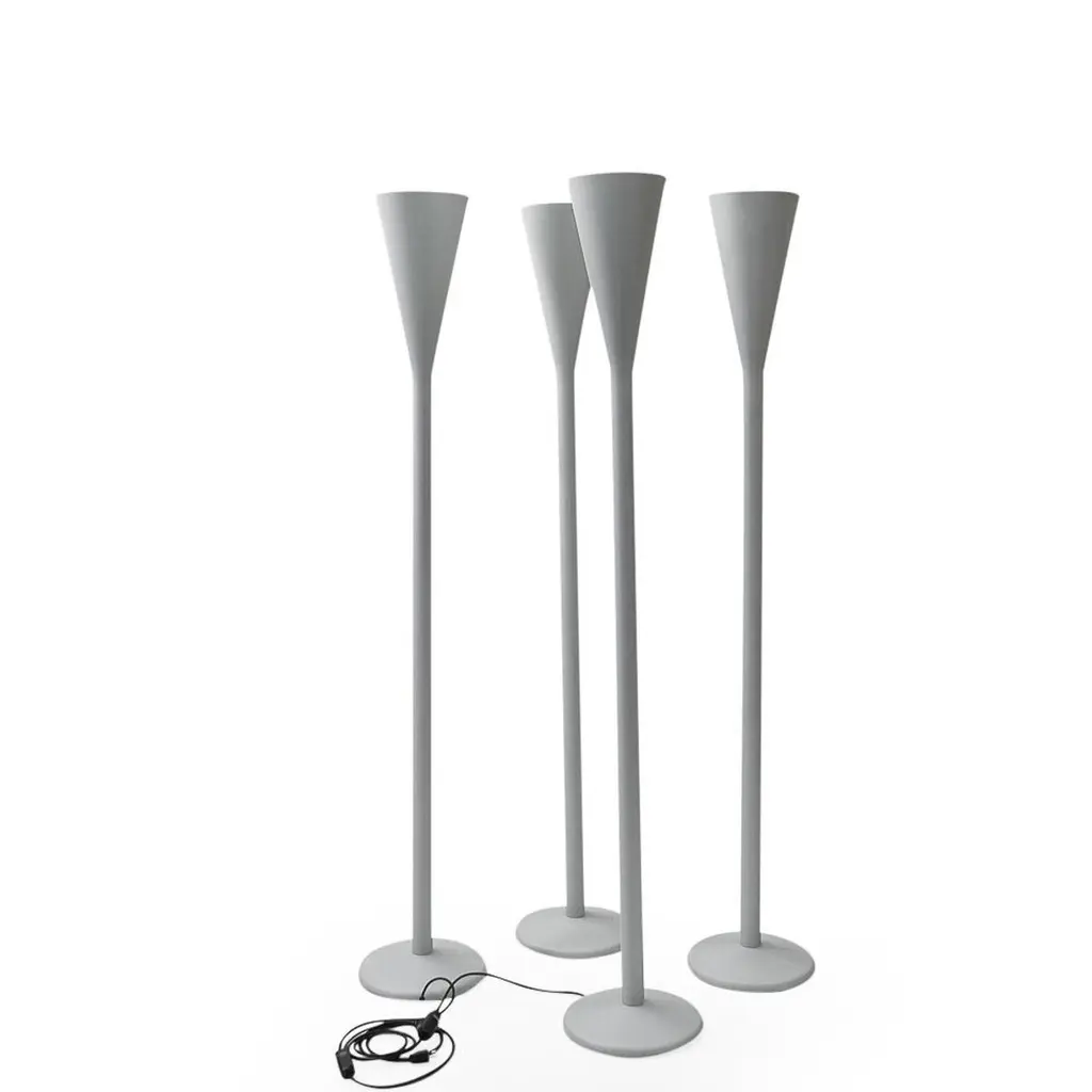Please note that the price is for 1 lamp.Floor lamp designed by Pietro Chiesa in 1933 and produced by Fontana Arte. The Luminator was for its time a groundbreaking design, and considered to be the first indirect light floor lamp in design history.The lamp is completely built up in metal, consisting of a stem that widens into a cone. The color can be best described as a very light grey, with a hint of blue. The finish is not smooth, but has a relief to it.Light source: E14 Screw-in halogen or incandescent bulb. Can be used on the US electric grid after a plug change (we can do this for you!).Origination: Italy, 1980s. Most lamps carry the Fontana Arte label.Condition: Very good, minor signs of use on the metal finish as per pictures. We have replaced the dimmer and part of the wiring for safety reasons.Approximate dimensions:Height: 185 cmDiameter: 30 cmWe have four in total available, price per piece.