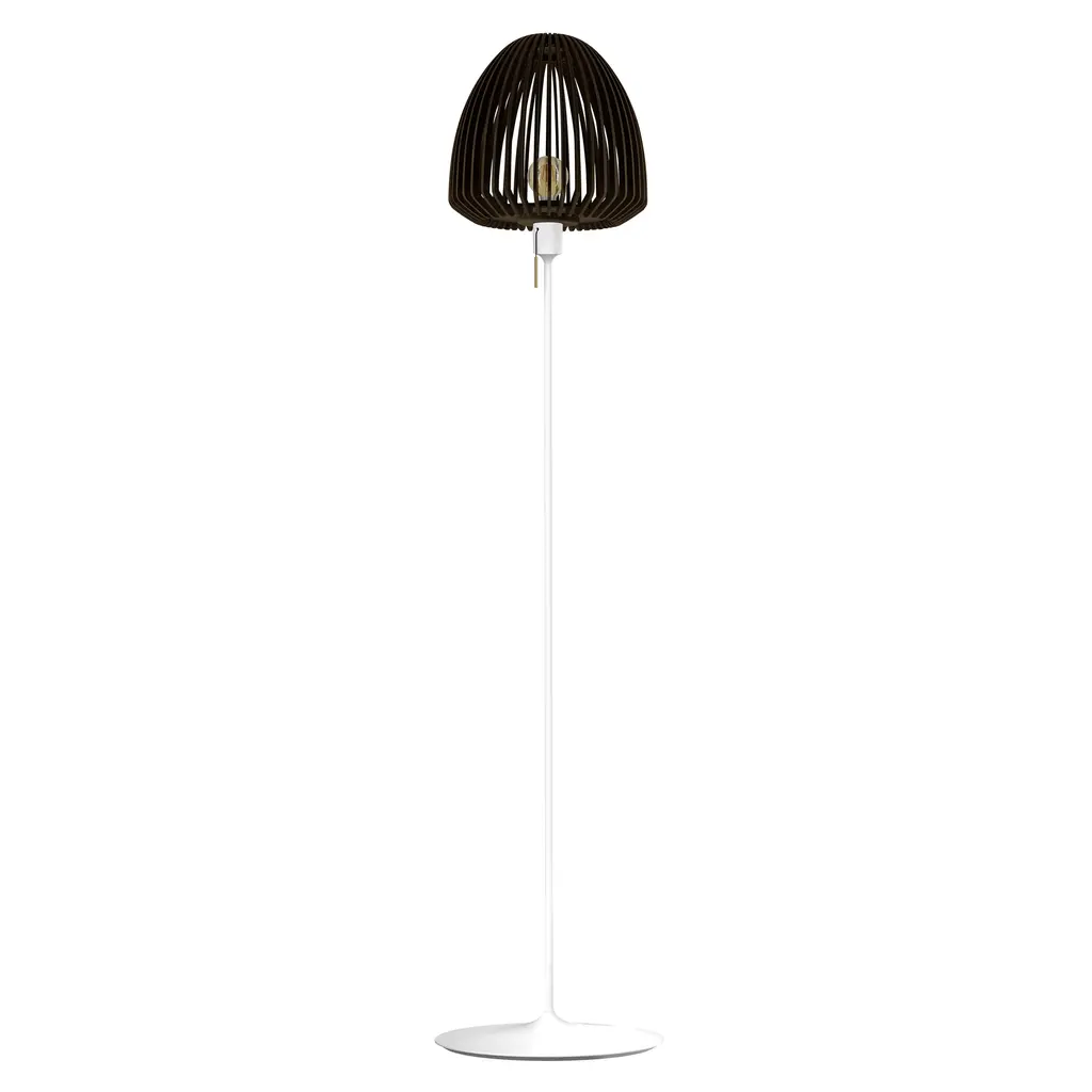 The Clava Wood Floor Lamp features a lampshade crafted from laser-cut wooden lamellas, casting beautiful patterns of light on surrounding walls. The clean lines of the wooden lamellas make the Clava Wood suitable for various spaces, enhancing dining areas, hallways, or bedrooms. When paired with the Santé floor light stand, it becomes a stylish floor lamp, perfect for placement near a sofa or in a cozy corner. The Clava Wood lampshade is available in oak, dark oak, and black oak finishes.