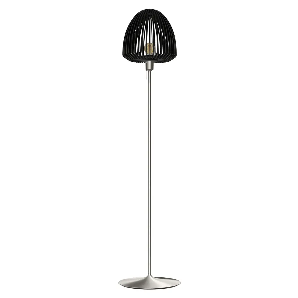 The Clava Wood Floor Lamp features a lampshade crafted from laser-cut wooden lamellas, casting beautiful patterns of light on surrounding walls. The clean lines of the wooden lamellas make the Clava Wood suitable for various spaces, enhancing dining areas, hallways, or bedrooms. When paired with the Santé floor light stand, it becomes a stylish floor lamp, perfect for placement near a sofa or in a cozy corner. The Clava Wood lampshade is available in oak, dark oak, and black oak finishes.