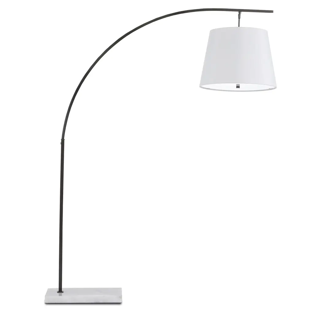 The angular arc of the stem of the Cloister Bronze Floor Lamp, the way the shade dangles, and the minimal shape of its base makes it an exemplar of contemporary design. The clean way the stem is fastened to the base and the pared-down lines of the white linen shade enhance the black floor lamp’s modernity. The acrylic diffuser fastened by the petite button finial is a design detail of note. Ships In 7-10 Business Days This image is for illustrative purposes only. The colors shown are accurate within the constraints of lighting, photography, and the color accuracy of your screen.