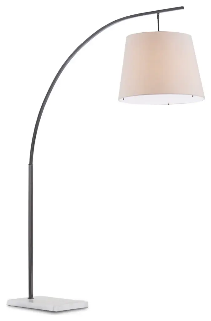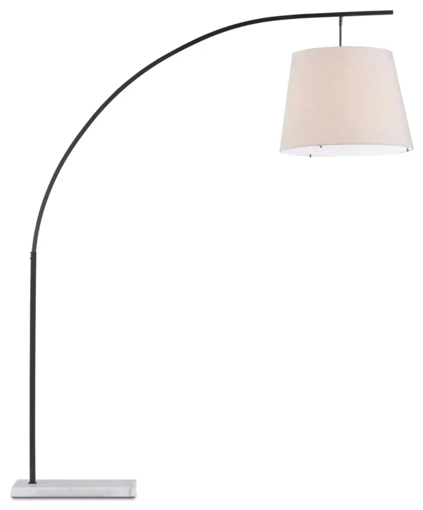 The angular arc of the stem on the Cloister Bronze Large Floor Lamp, the way the shade dangles, and the minimal shape of its base are design details that make it an exemplar of contemporary design. The clean way the stem is fastened to the base and the pared-down lines of the white linen shade enhance the black floor lamp''s modernity. The acrylic diffuser fastened by the petite button inial is a clever aspect to this design.Number of Bulbs: 2Type of Bulb: A StandardMax Bulb Wattage: 75Bulbs Included: Bulbs Not Included