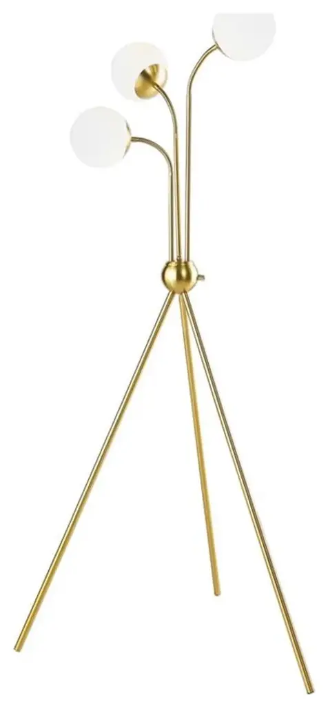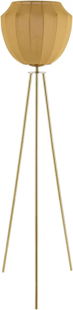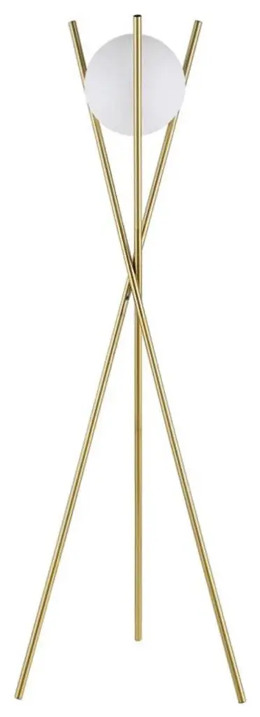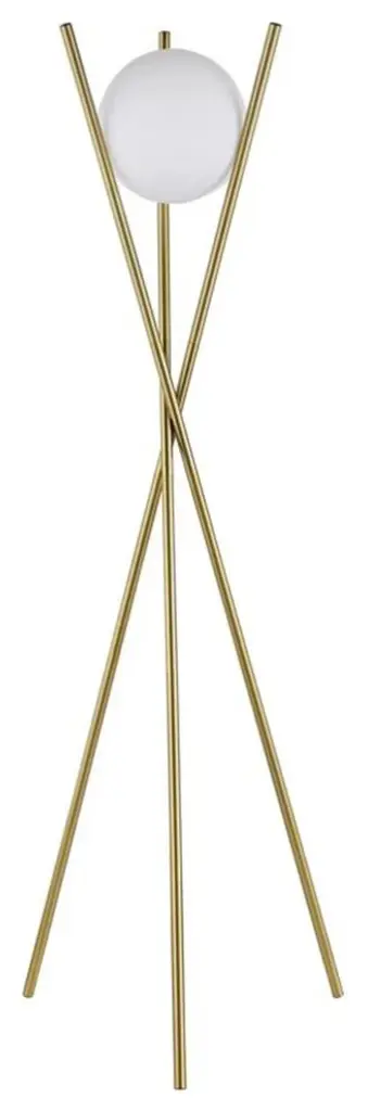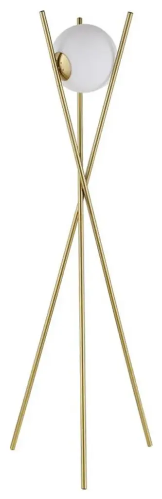 Downscaled style delivers artisan charm in a lamp with a special look that elevates your bedroom or living area. The Yamileth floor lamp makes more out of less, blending gold finished metal with a chic glass shade. A wispy geometric silhouette forms from crossed rods that end in a tripod base. A round frosted white glass shade filters ambient lighting beautifully, creating a glow when on and a delicate element when off. Turn this lamp on and off from a long cable mounted foot switch.Features: • Includes: One (1) floor lamp • Material: Metal, glass • Finish: Gold • Switch type: Foot switch • Bulb type: 9W • Socket: E26Specifications: • Product Dimensions: 64.75" H x 22" W x 19.5" D • Product Weight: 6.6lbs • Number of Lights: (Required) 1 • Wattage: 9W • Assembly Required: Yes • Warranty: One (1) year limited manufacturer warranty • Product Dimensions: (Power cord length) 96" • Bulb Type: LED