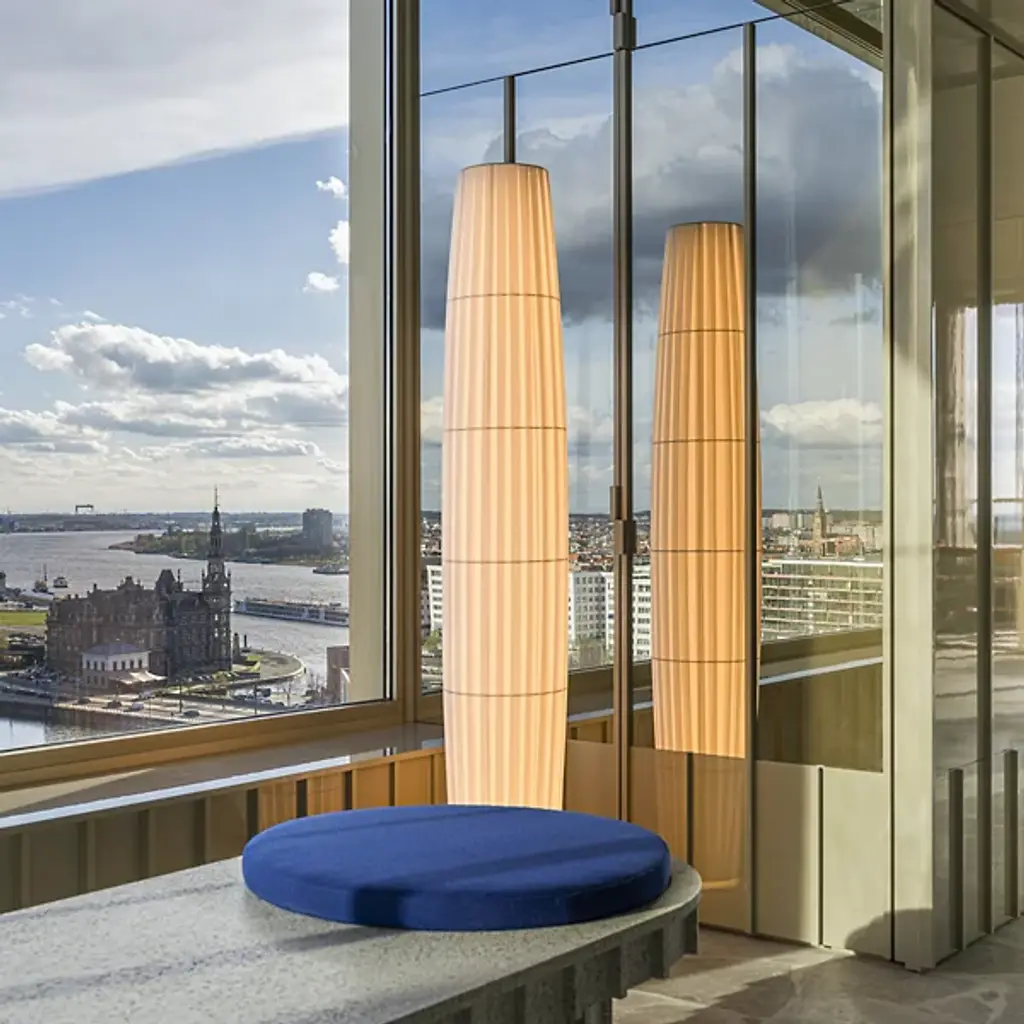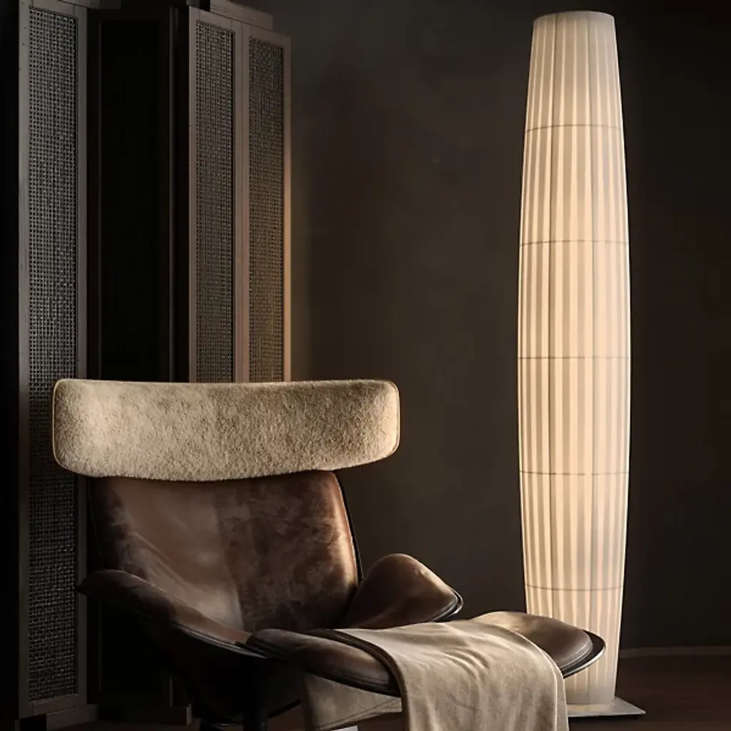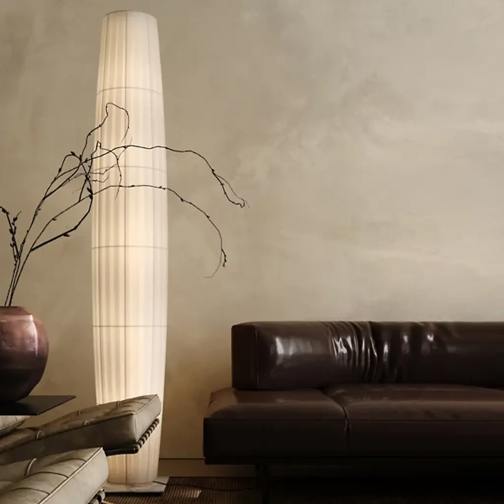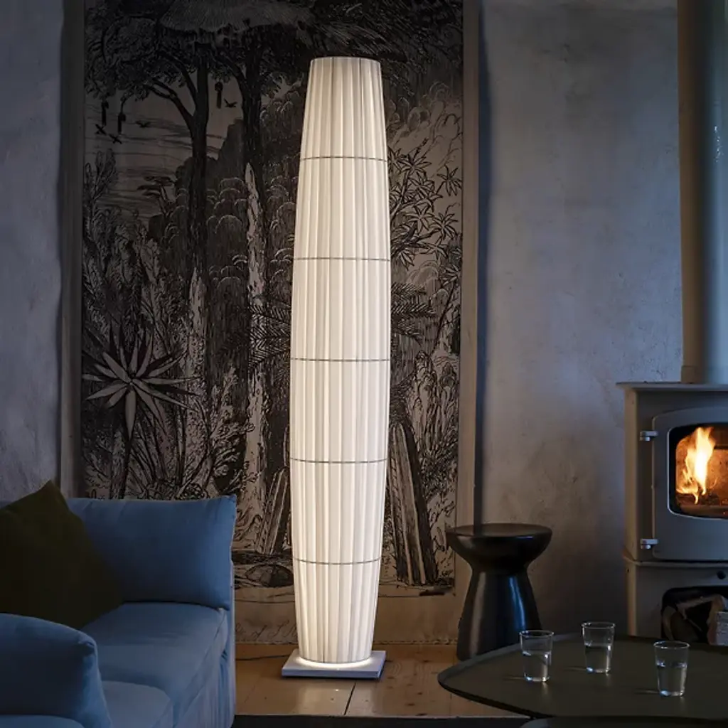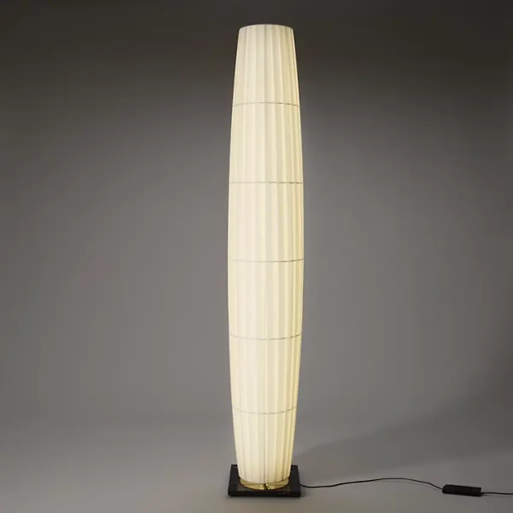 Transform your interiors with the elegant simplicity of the Colonne LED Floor Lamp from 10 HEURES 10. A mix of contemporary simplicity of form with rustic modern detail elements designed by Fabrice Berrux, it’s part of a complete range of fixtures inspired by traditional pleated fabric lampshades around powerful and energy-efficient LED lamping. A square base in either rich marble or smooth metal secures the fixture. At the same time, a foot dimmer makes customizing light levels easy and accessible, adjusting the intensity of the LED behind the polyester taffeta diffuser with the tap of a toe.