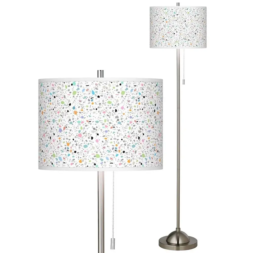 Colored Terrazzo Brushed Nickel Pull Chain Floor Lamp - 13" X 62" - Silver - 13" X 62"