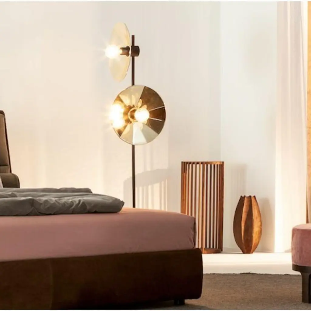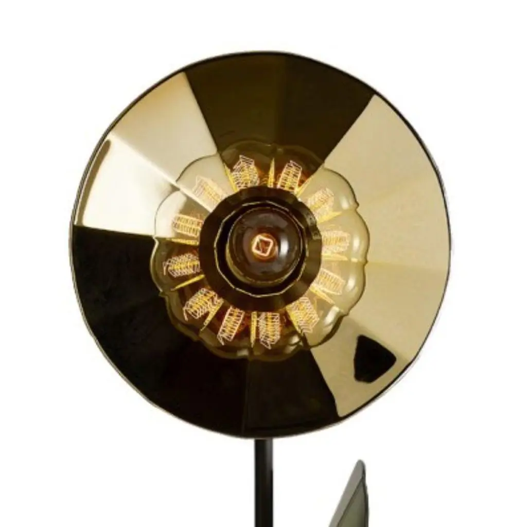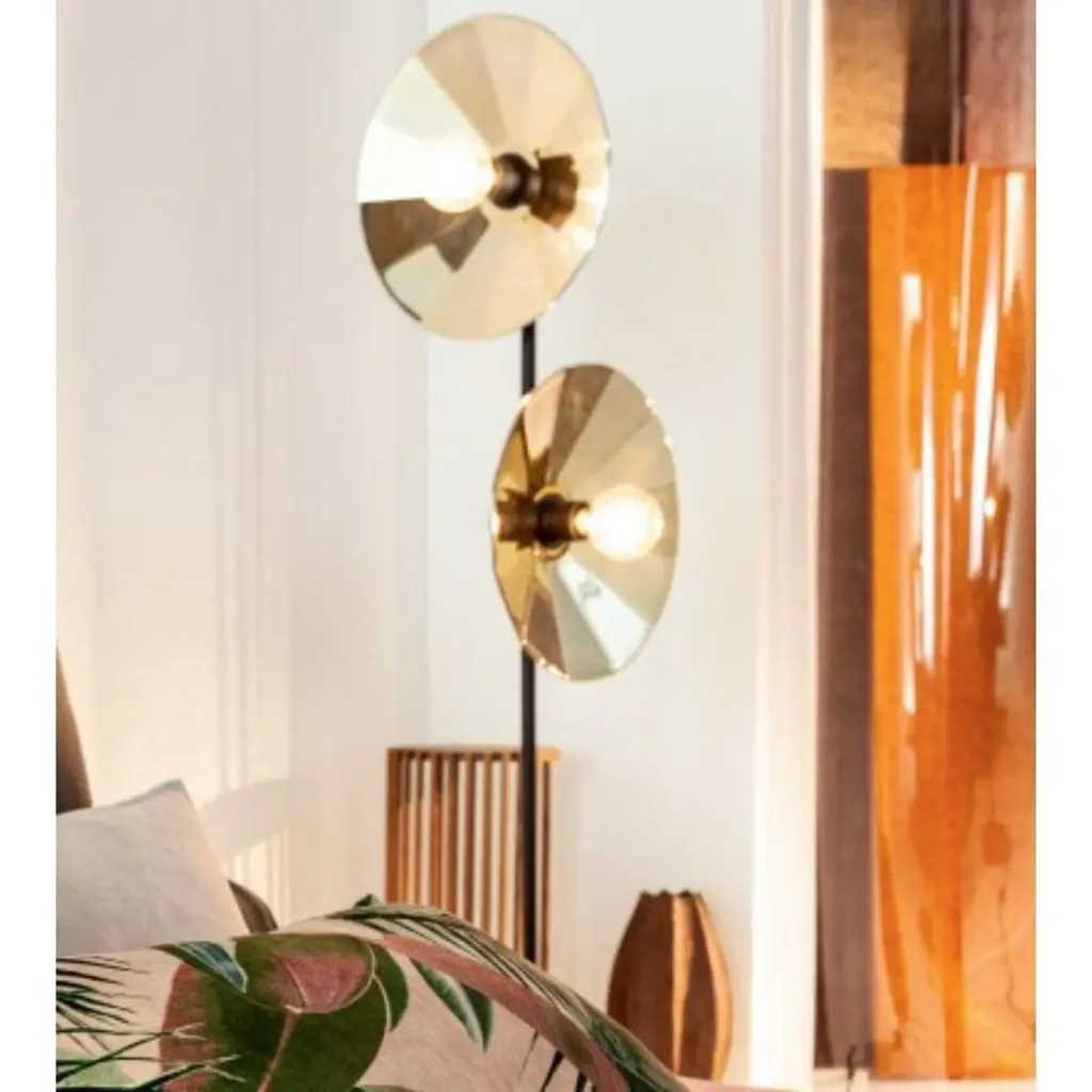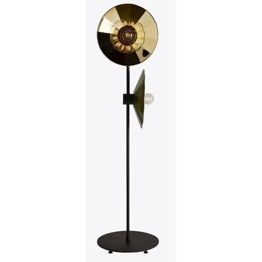 Cometa floor lamp by Radar (Handmade).Design: Bastien TaillardMaterials: Thermoformed gold glass, matt black metal structure.Dimensions: D 40, H 160cm.Also Available: Fractale/zenith/nebbia/iris/echo versions, & in silver or bronze.All our lamps can be wired according to each country. If sold to the USA it will be wired for the USA for instance.Elegant, timeless, understated. The RADAR collection allows you to take a welcome break from the teeming world of objects and styles, and proposes practical, beautifully designed products made by aesthetes for aesthetes.Francesca Bertini, Milanese born in the Mecca of world design, married to a Neapolitan with whom she lives in France. First tempted by a professional sports career in alpine skiing, she decided to invest in another challenge, her diploma in management of international companies at Università Bocconi in Milan.From marketing for a large editorial group to international and institutional relations for an important think tank European linked to the Italian Ministry of Foreign Affairs, she moved to France and put her experience at the service of the commercial management of a luxury decoration brand. Bastien Taillard was born into a family of interior decorators and designers where creativity was a driving force.After his training at the ENSCI (National School of Industrial Creation, Paris) this tireless traveler settles temporarily in Milan where he meets several of his future mentors, these iconic designers, pioneers and innovators. It is his own path and style that he develops according to his experiences and his encounters.