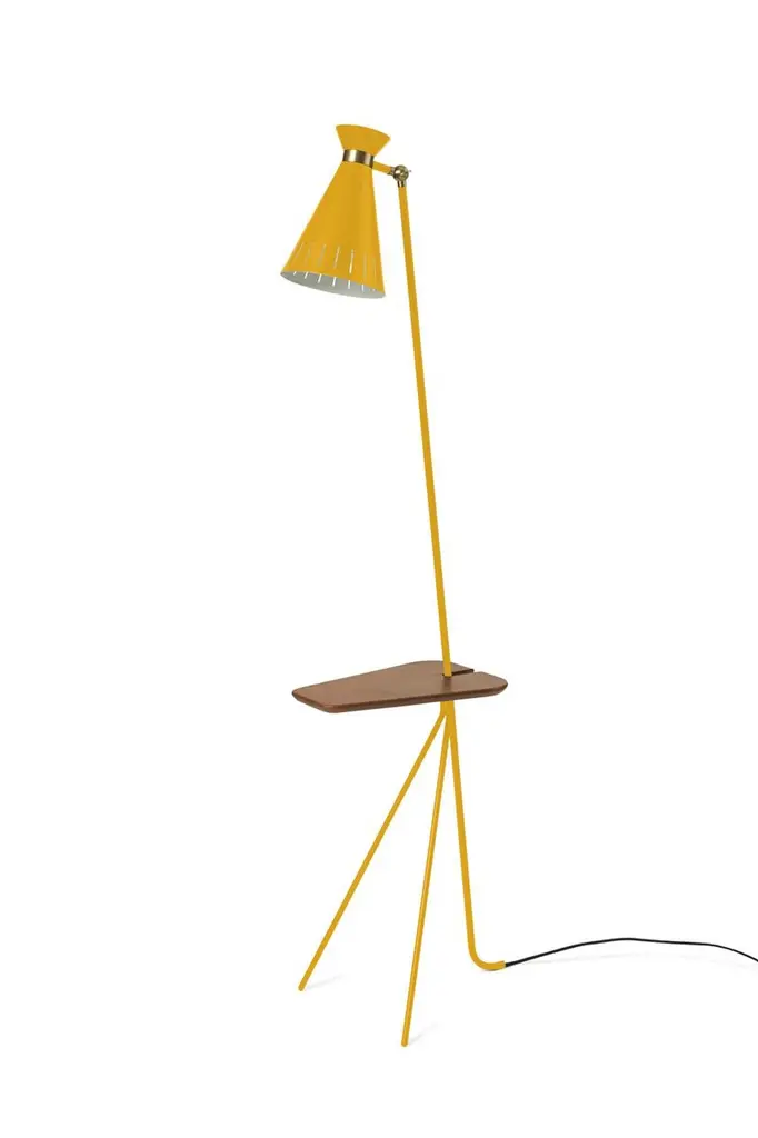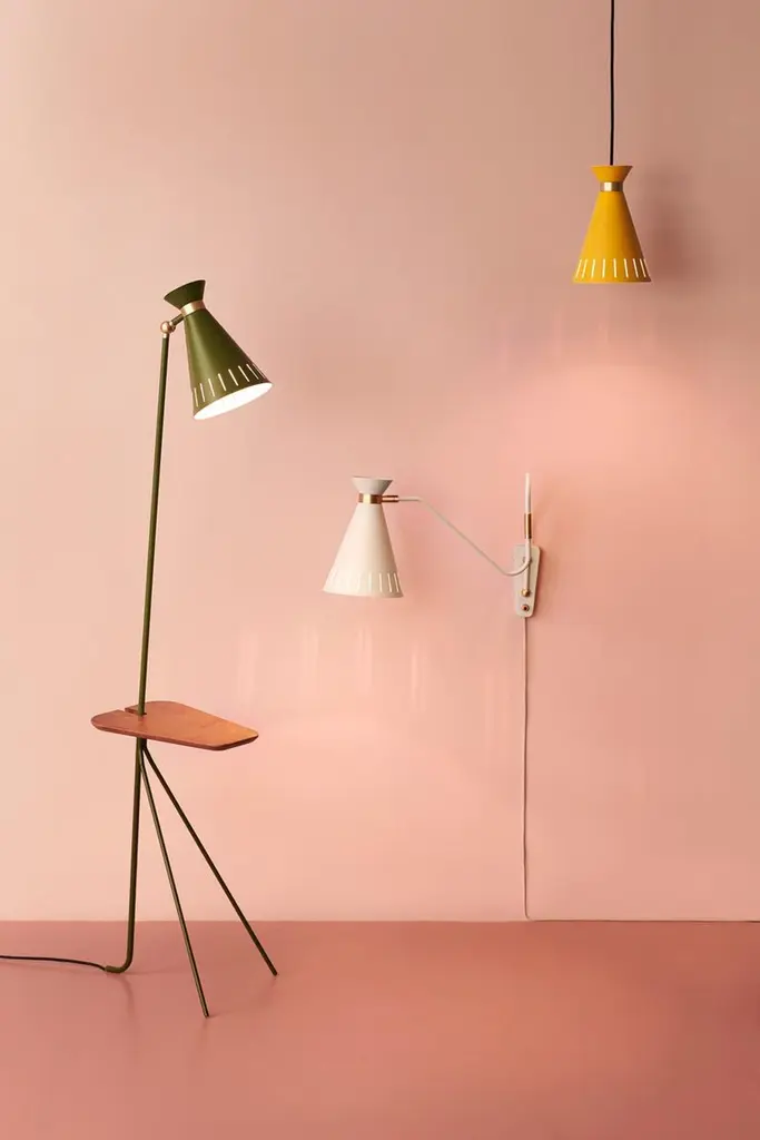Cone Floor Lamp with Table Pine Green by Warm NordicDimensions: D28 x W33 x H144 cmMaterial: Lacquered steel, Solid brassWeight: 3 kgAlso available in different colours. Please contact us.A classic floor lamp with a small, integrated, solid oak shelf table in an elegant 1950s design by the internationally renowned lighting designer, Svend Aage Holm-Sørensen. The shelf table on the Cone floor lamp is a charming period detail, which cries out for a cup of coffee, a drink or a mobile phone. The lamp's shade can be rotated in all directions to achieve light exactly where you want it. The design is lent even more character by the architect's iconic light grooves along the edge of the metal shade, which also contribute to warm background lighting in a room. The solid brass details of the Cone floor lamp add the final touch to the classic look.Warm Nordic is an ambitious design brand anchored in Nordic design history and with a timeless, aesthetic style that inspires you to appreciate the little things in life. The company is the result of several years’ intense work on developing a new design brand with design history, quality and personality at its core. Warm Nordic boasts a colourful and charming universe of furniture, lamps and accessories full of personality. Our designs encapsulate the Nordic spirit, which in its essence is timeless, inclusive and warm.
