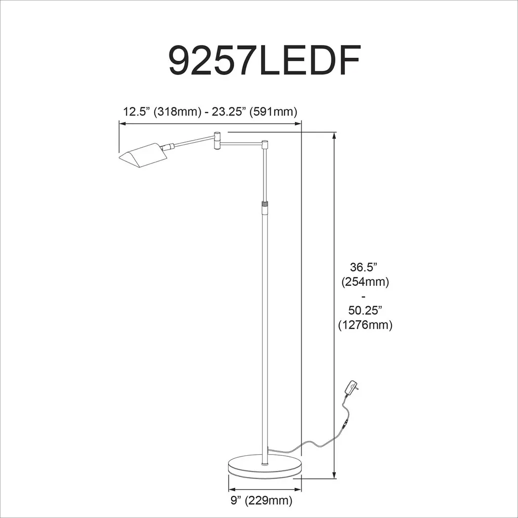 Contemporary 50.25 Inch 9.00 Watt Black Task Floor Lamp Portable Light, Swing Arm