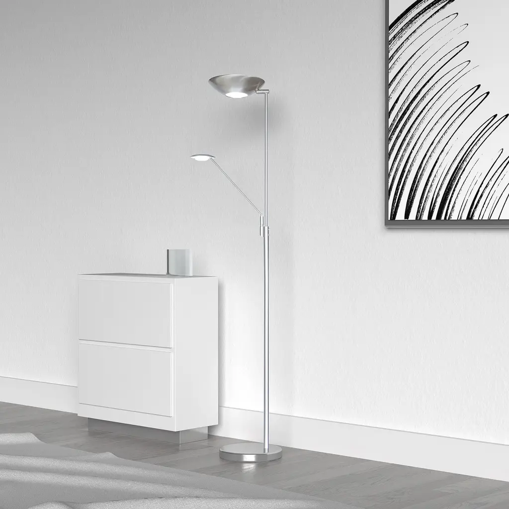 Adding welcome light in a smooth contemporary aesthetic, the LED Floor Lamp collection features a distinctive profile. The design features an integrated LED light. LED fixtures produce light at up to 90 percent better efficiency than incandescent lighting. The metal base and rod curves back slightly for the simple configuration, splitting into two arms for the mother/son light. The light housing directs illumination down from above, making it ideal for reading, studying or work. Available in both a simple and mother/son configuration, it's a stylish and practical solution to any dark corners of your home or office.