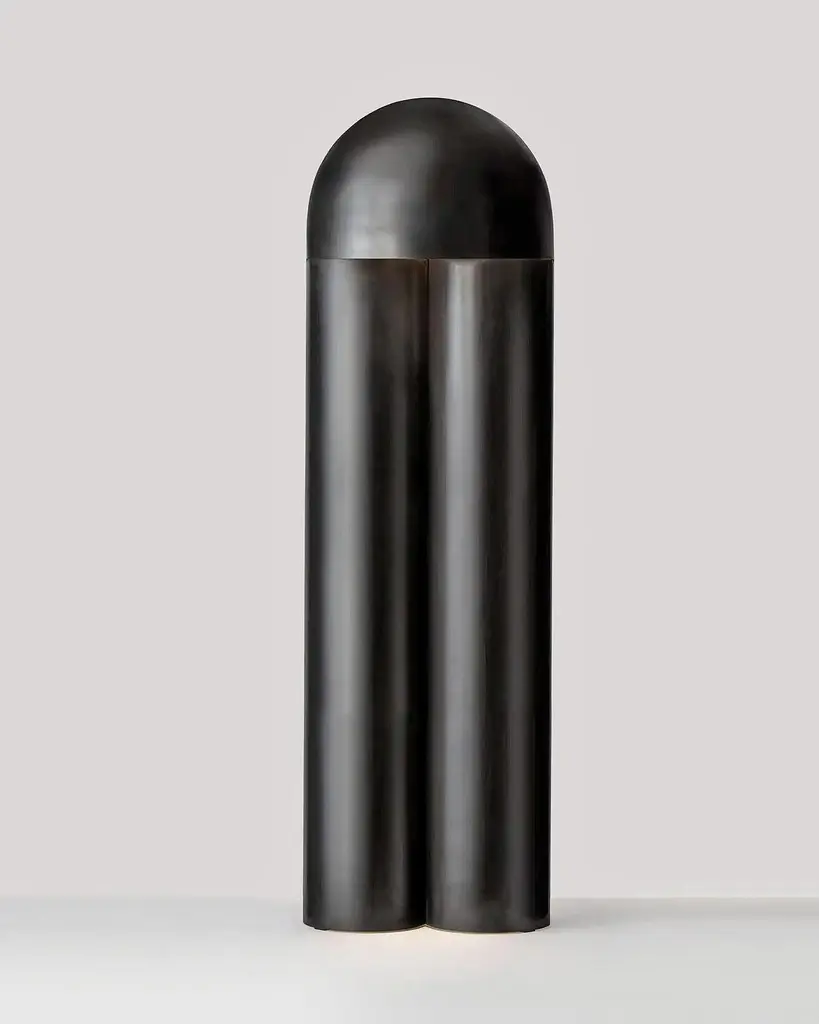 Contemporary Aged Brass Sculpted Floor Lamp, Monolith by Paul MatterThe Monolith lamp is an exercise in reduction. Sculpted out of a single body with the help of simple scores and folds, the lamps geometry, surface texture and finish of the material make for calming interactions with light. Custom made in three sizes, small, large and floor.Material:BrassFinishing:burnt brass, aged brass, buffed brass, silvered brass, polished steelDimensions: H 147.3 x D 38 cmWeight: 15 KgLamping:1 Type E27 Medium Base, 3W - 5W LED.Warm White, Voltage 220-240V.CE CertifiedAll Paul Matter lighting can be wired according to each country.Dimmable upon requestSculpted and assembled by hand in IndiaPaul MatterPaul Matter is a contemporary light design studio that explores light design by blending the traditional with the experimental, form with function, and detail with the ordinary. The longevity of the designs is ensured by combining timeless visual language with materials that refine with age. The studio works closely with master craftsmen, developing handcrafted products, finished and assembled with great attention to detail, one piece at a time.Drawing from a rich palette, the materials used include aged brass, copper,stone, leather and blown glass.
