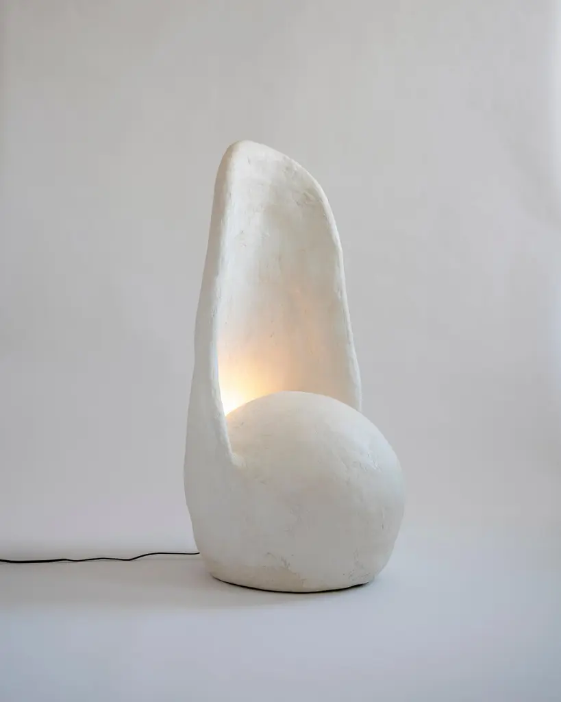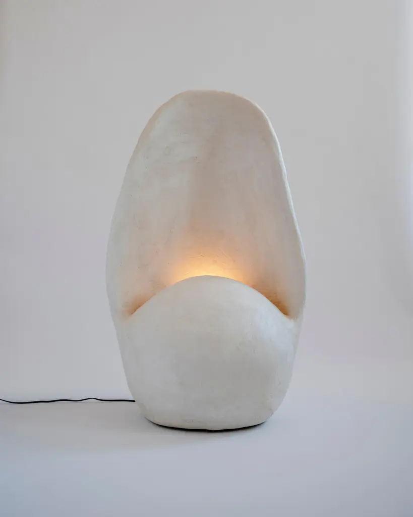 Contemporary Floor Lamp in White Gypsum, Handcrafted by Mike Ruiz-SerraDimensions: W 109 x D 109 x H 152 inch.Materials: Gypsum, recycled paper pulp, electrical components.Collection 1 (previously titled PULP) started as an exploration into the structural characteristics of paper pulp reinforced gypsum. It now exists as a series of open editions that are manufactured using a mixture of molded gypsum and/or manual layups over inflatable molds. All pieces in this collection are finished with shellac, a non-toxic and natural finish. This gives the gypsum a slightly warm, bone-like white color. Mike Ruiz-Serra is a New York based designer and fabricator born in 1997.