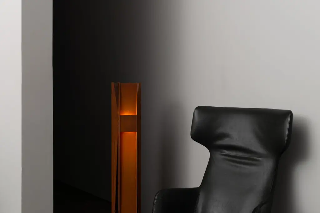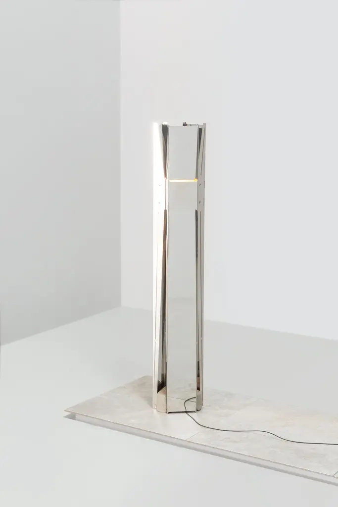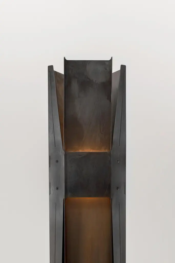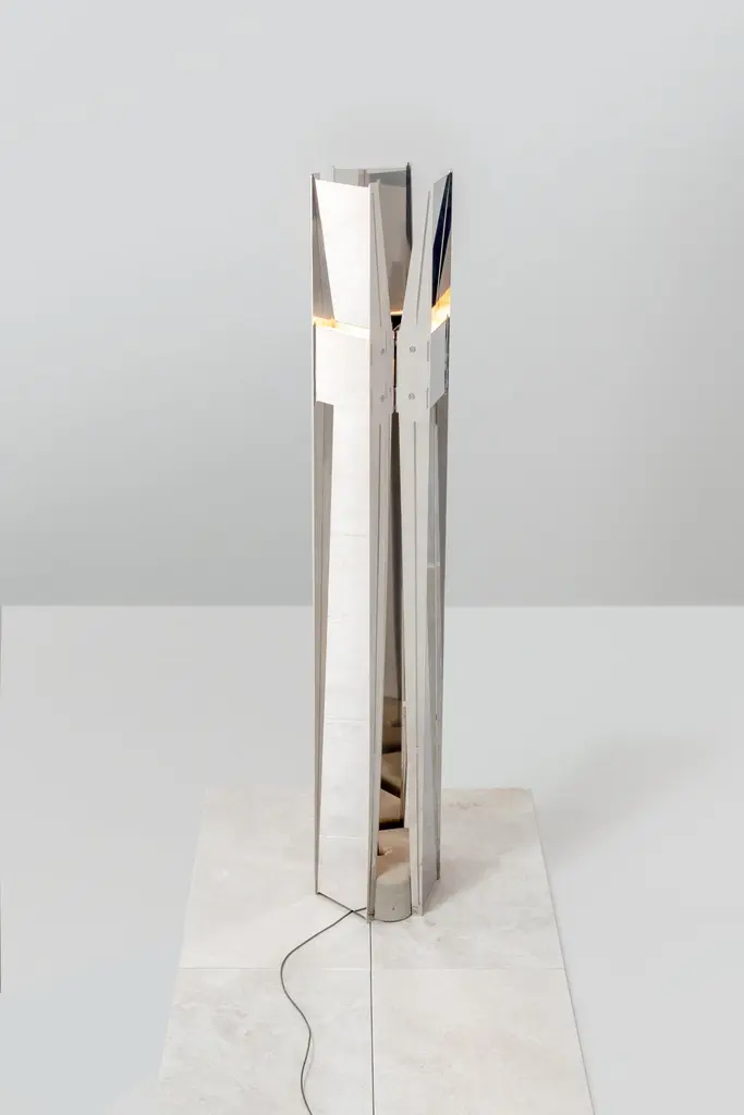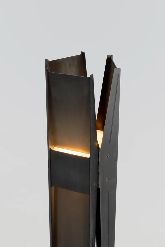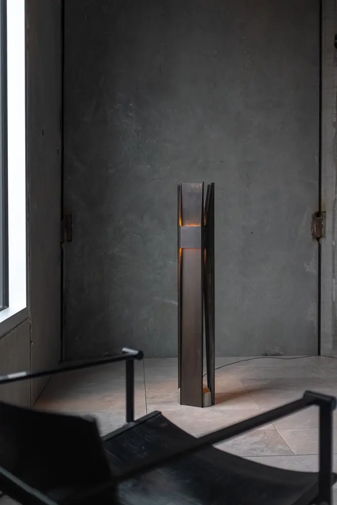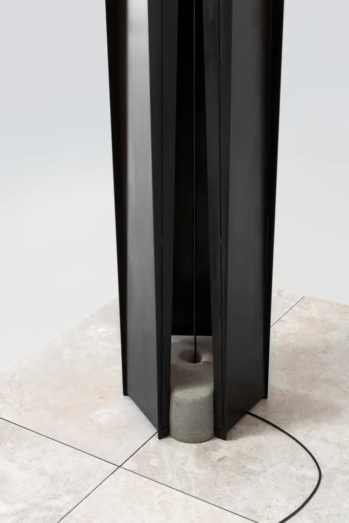 Contemporary Floor Lamp 'Vector'Model shown: Weathered SteelBase finish: ConcreteDIMENSIONSH. 120 x D. 22 cm / H. 47.25” x D. 8.5”ELECTRICALInput Voltage: 110–120V, 220–240V, 110–277V Foot dimmer switch includedUL Listed _________________The Vector floor lamp by A-N-D comprises three rectilinear sections in a vertical orientation, affirming stillness in its statuesque beauty. Light pours onto the inner and outer faces bidirectionally. The panels are fitted together to create a slender rectilinear section known as the Vector, which directs light to wash down its inner sloped surfaces, proffering a gradient effect.A-N-D is a decorative lighting design studio and manufacturer based in Vancouver, Canada where original collections are conceptualized, built and assembled in-house.A-N-D investigates new design possibilities using innovative production methods while integrating the most current technologies in lighting. The result of that exploration puts forward honest products that transcend time and place. In pursuit of the visually poetic, we’re inspired by the unexpected and the everyday; compelled by the capacity of light to shape and animate space.