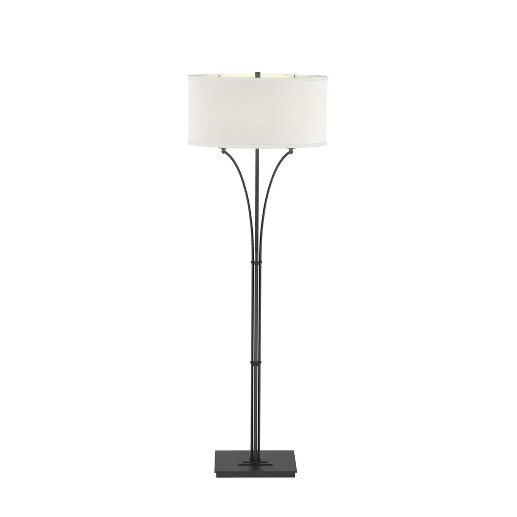 Our Contemporary Formae Floor Lamp offers a contemporary take on the traditional taper. Tubes of curved steel slowly peal from the stand running up from the base to form gentle arcs that support each bulb. Forged and formed by our artisans, each piece is unique.Includes 2 x 100 watt A-19 E26 medium LED bulb(s)(Included).All Hubbardton Forge products are hand-crafted to last one at a time in Vermont and backed by a Lifetime Limited Warranty.