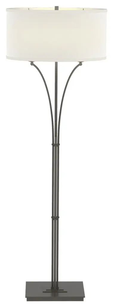 Our Contemporary Formae Floor Lamp offers a contemporary take on the traditional taper. Tubes of curved steel slowly peal from the stand running up from the base to form gentle arcs that support each bulb. Forged and formed by our artisans, each piece is unique.Includes 2 x 100 watt A-19 E26 medium LED bulb(s)(Included).All Hubbardton Forge products are hand-crafted to last one at a time in Vermont and backed by a Lifetime Limited Warranty.