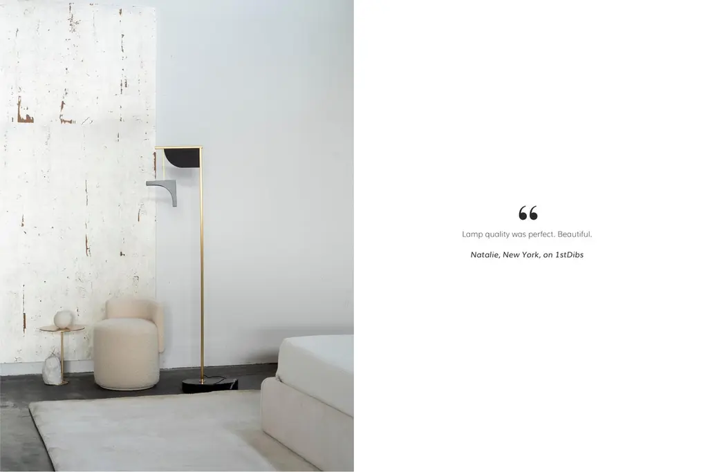 Contemporary Opposite Floor Lamp, Contemporary Collection, Handcrafted in Portugal - Europe by Greenapple.Award Winning Design German Design Awards 2025 The Opposite modern floor lamp brings the creative vision to life through its meticulous design, elevating the atmosphere of the modern home. The warm embrace of brass details seamlessly contrasts with the Silver Portoro marble base, allowing the modern floor lamp to create a subtle ambience with its graceful appearance.Opposite Floor Lamp Material CodesME006 Brushed brass; high-gloss finishST053 Silver Portoro marble; polishedFI007 Black lacquer; satin finishWD107 American oak; open-pore black stained; matt finishEL001 LED light stripHandcrafted in Portugal - Europe by GreenappleUnique by design, Crafted by peopleFounded in 2005 by Sérgio Rebola and Rute Martins, Greenapple designs and produces in-house luxury furniture for exclusive customers worldwide.Our own in-house production facility allows us to be obsessed with detail, and gives us the freedom to dedicate ourselves to the most demanding tailor-made and customised work. As Rute designs all the unique pieces, Sérgio assures the high-quality standards through the whole process - from design to production; from production to your home. Fine craftsmanship, whether perfected by experienced hands or state-of-the-art machinery is quintessential in delivering top quality experiences.
