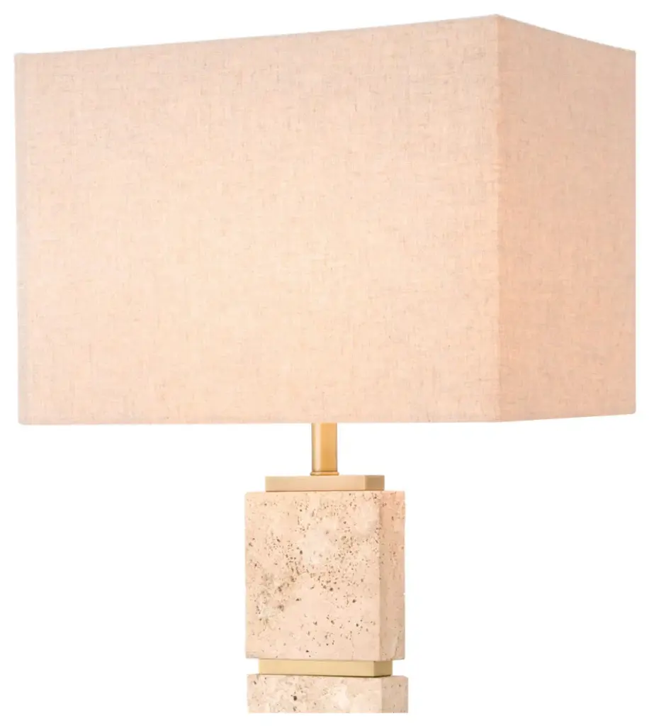 Add the Newton Floor Lamp by Eichholtz to your interior for a dash of sophistication and style. Its standout quality is the stem, which is composed of square travertines artfully stacked on top of each other, creating a texturally rich structure. Topping the lamp is a rectangular linen shade, providing a clean and modern contrast to the organic qualities of the travertine.W12 x D18 x H57 in | Weight 53lbsMaterials | Steel, Travertine1 Bulb: Max. 40W - E26 - 110V