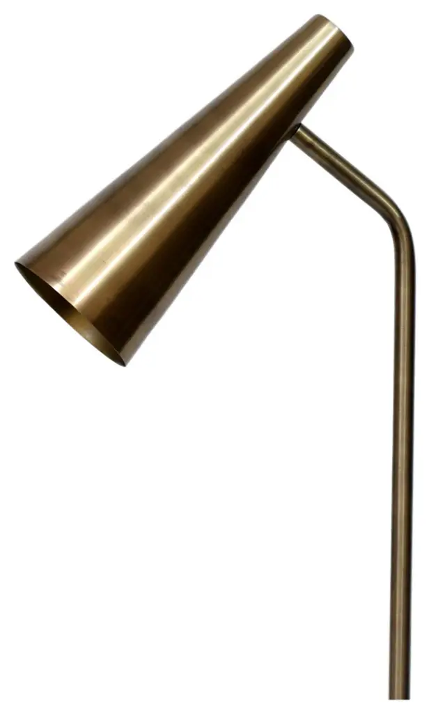With a thin iron shade that''s an abstract rendition of a trumpet, the Trumpet Floor Lamp stays true to its name. A brass finish gives the lamp a modern touch. Ideal for smaller spaces that need focused light. Uses LED bulbs for stylishly-efficient lighting. This lamp provides directional task and mood lighting. Wipe up spills immediately with a clean dry cloth. Clean regularly with a soft cloth dampened with a diluted solution of mild soap and warm water. Dry with a soft cloth. If the surface becomes chipped or scratched, rust or corrosion may occur due to the area being exposed to air. If rusting begins to occur, clean the affected area with a wire brush or steel wool. Recoat the repaired area with an appropriate finish for metal surfaces to stop deterioration. Made in IndiaIndustrial. Color: Anitque Brass . Dimension:10W 10D 49H. Product Weight:5. 60 lbs. Material: IronWe understand how important your home is and how decorating your kitchen, dining room or bedrooms with classy, contemporary furnishings can help make it a place that reflects who you are. We believe in the power modern furniture has in creating not just a home but YOUR home. We believe in feeling good about our home''s environment, and we think you do too.Iron base and shadeProvides directional task and mood lightingEasy on-and-off toggleUL Certified and LED compatibleColor: GoldMaterial : Iron Lamp Base and Shade