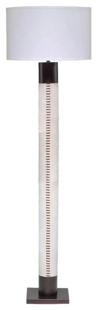 Warm oil rubbed bronze is wrapped in white hair-on hide in this exceptional lighting option. The hides for each are selected by hand; no two hides will be identical. Their masculine edge is enhanced with a bronze finial and softened with an off-white linen drum shade, resulting in a unique choice for study, living area, or den. Coordinating table lamp available separately.20"L x 20"W x 70"H. Weighs 20 lbs.Hand Finished Hair on Hide over Bronze Finished Steel. Linen Fabric ShadeUL listed. Uses one max 150W Type A bulb (not included). 3 way socket switch.Heirloom Quality - Expertly hand crafted and hand finished. Due to the hand crafted nature of this piece, each piece may have subtle differences.