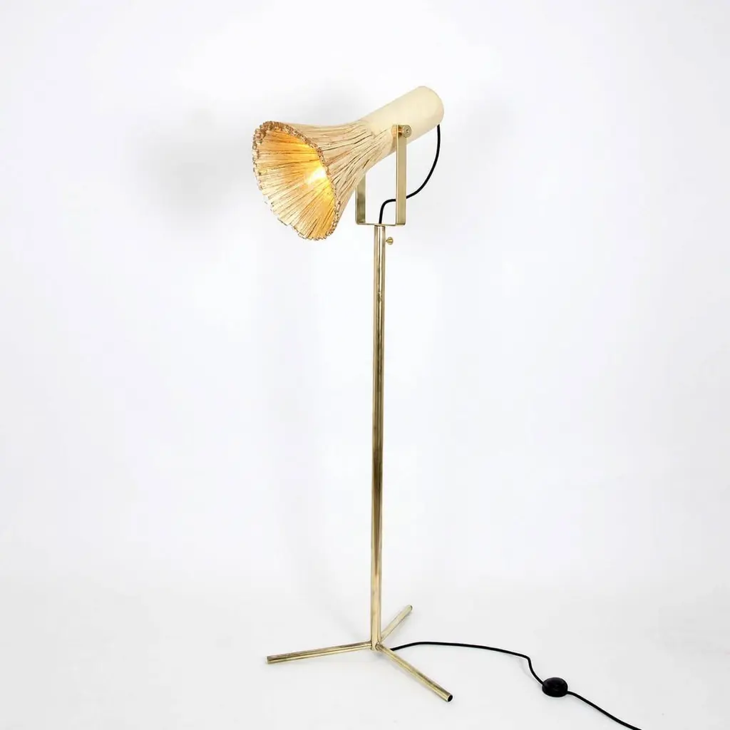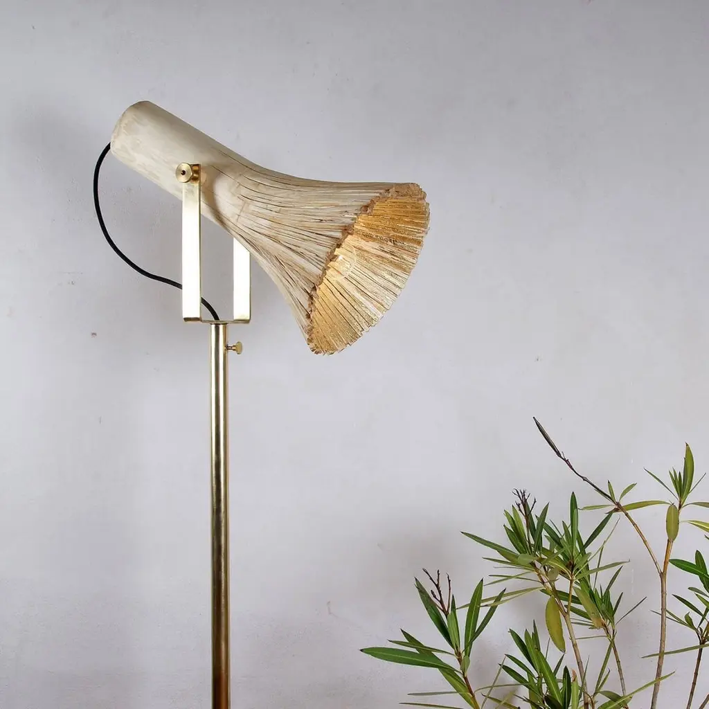 Contemporary Wood & Brass Floor Lamp, Pressed Wood Natural By Johannes Hemann