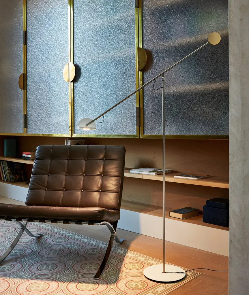 Circles, semicircles, tubes, and bars of different diameters, materials, and weights…with the combination of these primary elements the Copérnica collection constructs geometric sculptures of light, establishing an intimate relationship with space and combining functionality with the beauty of pure lines. This design allows one to move the lamp with great precision, providing a wide range of heights, distances, and adjustments to the beam of light to suit one’s taste.