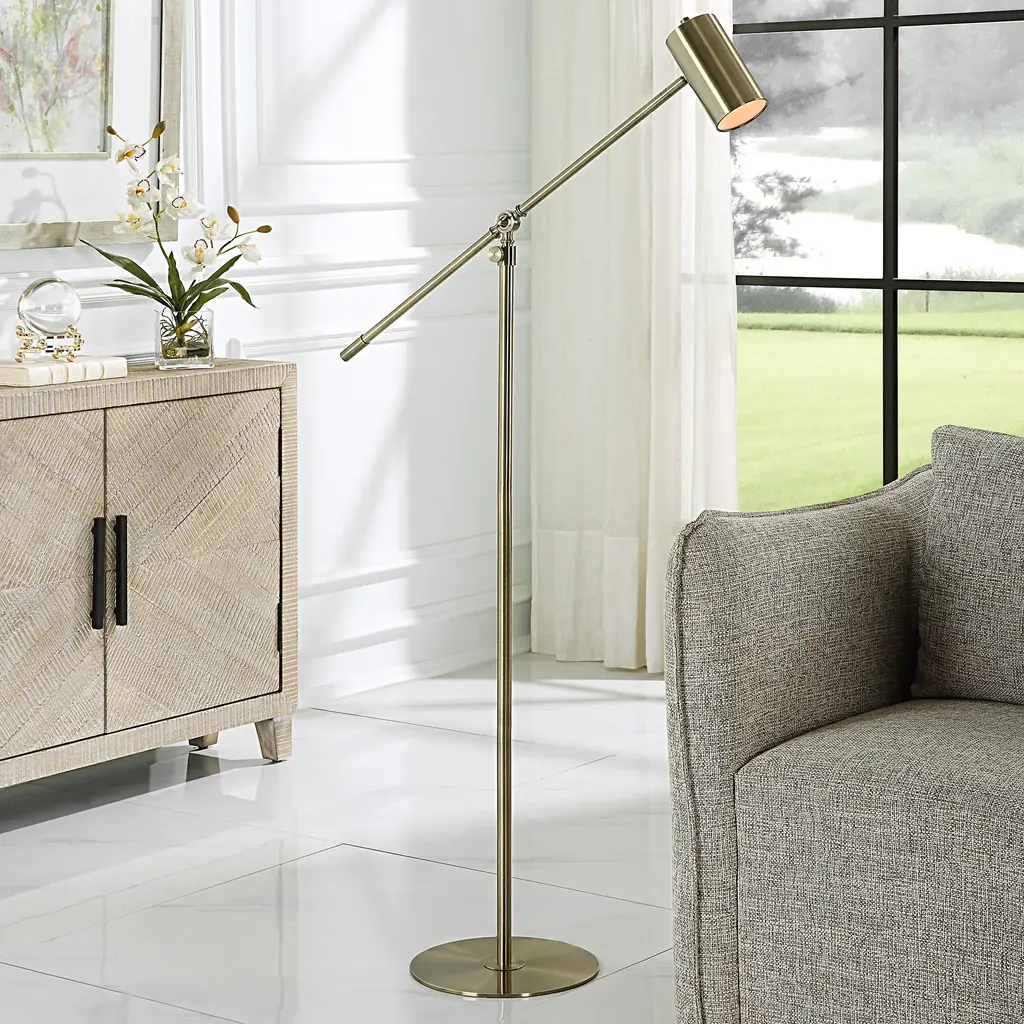 Copper Grove Antique Brass Adjustable Height Floor Lamp - Antique Brass