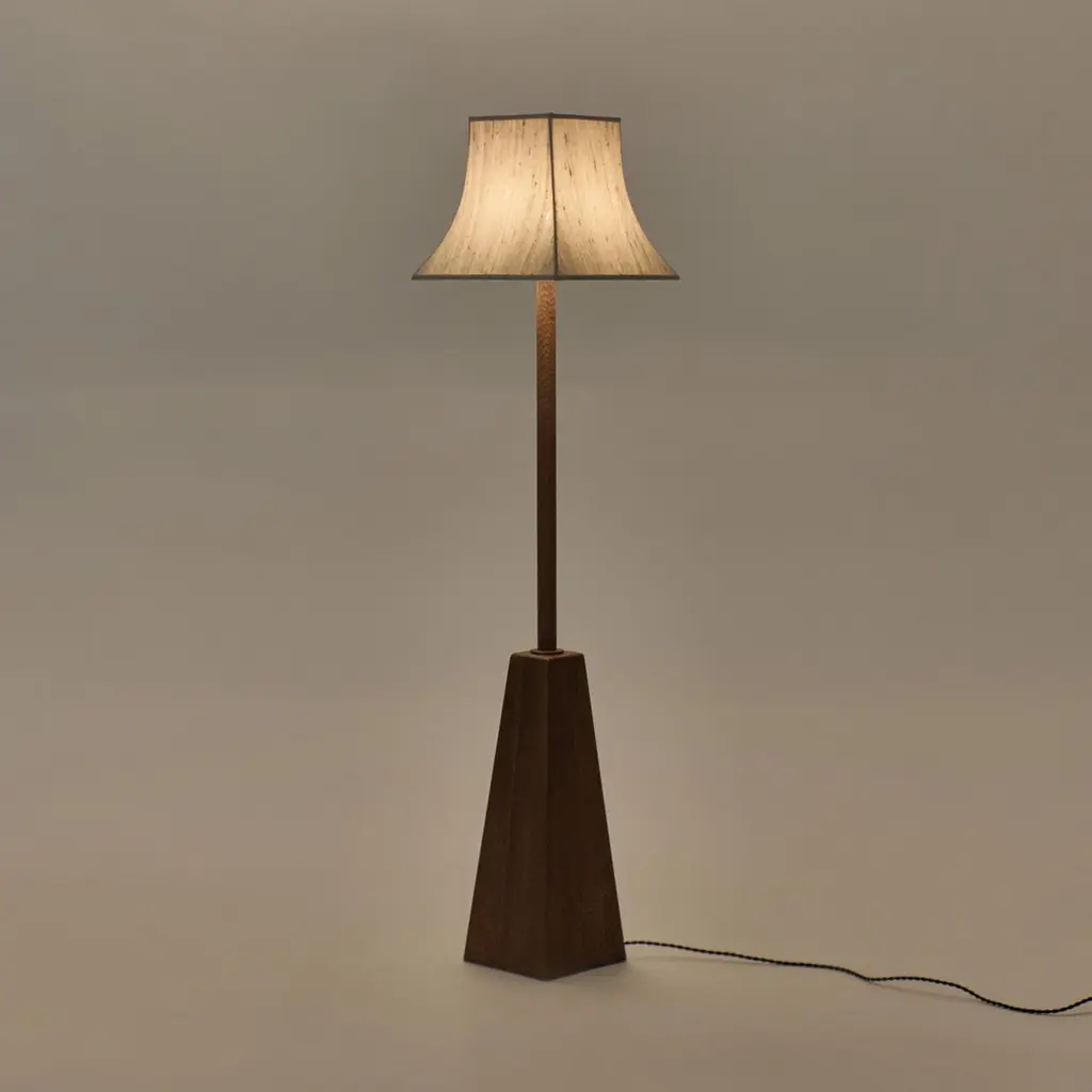 COQUETE FLOOR LIGHT, designed in 2025.Large artisanal floor light made in Project 213A's own workshop. This piece has a hand-crafted base that is either finished in wood or ceramic. The lampshade stem is made from solid wood and finished in a hand gouged texture. Each piece is unique due to its handmade nature, shapes and shades vary slightly.Bespoke dimensions and colours available upon request. To view our glaze and wood options please contact us directly.Production lead time: 12-16 weeks