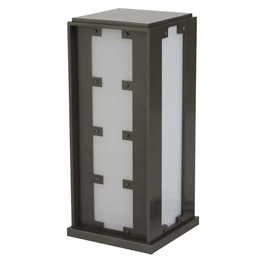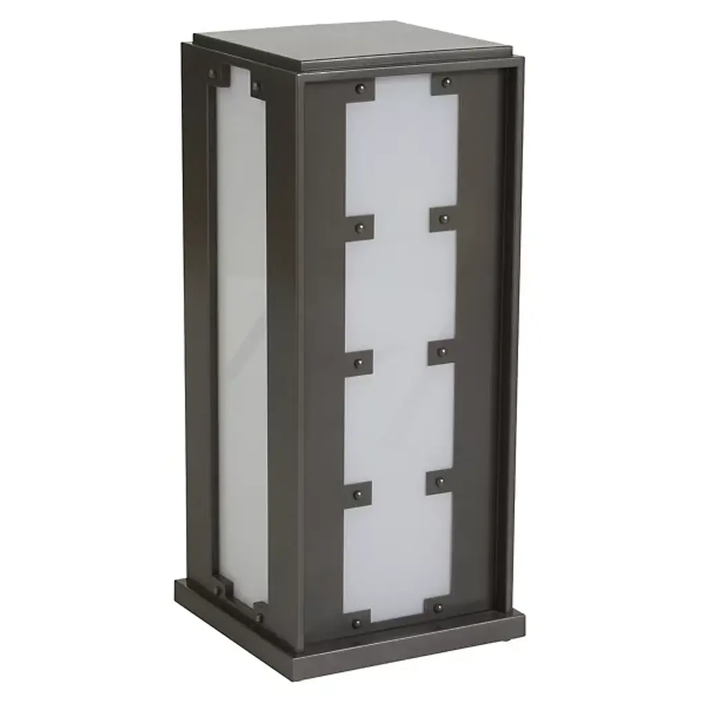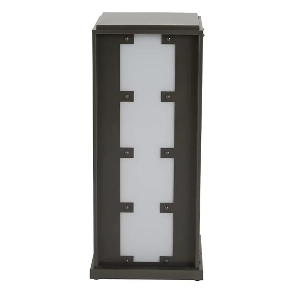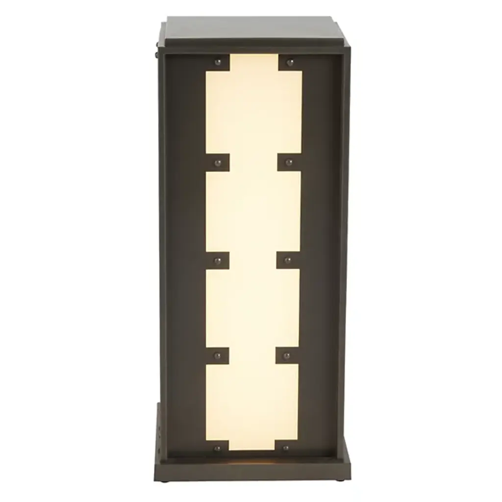 The Corbin Outdoor LED Floor Lamp from Arteriors offers a fresh take on traditional industrial design. It features an Art-Deco-inspired frame with small riveted details crafted from marine-grade aged iron and is finished with a protective coating to endure outdoor elements. Cutout accents and rivet details provide sophisticated touches around the inset panels of opal glass, while a triple-coat, marine-grade enamel finish adds strength and style. The wet-listed lamping can function in any environment, while the robust construction and generous, warm light provide a resilient addition to any outdoor space.