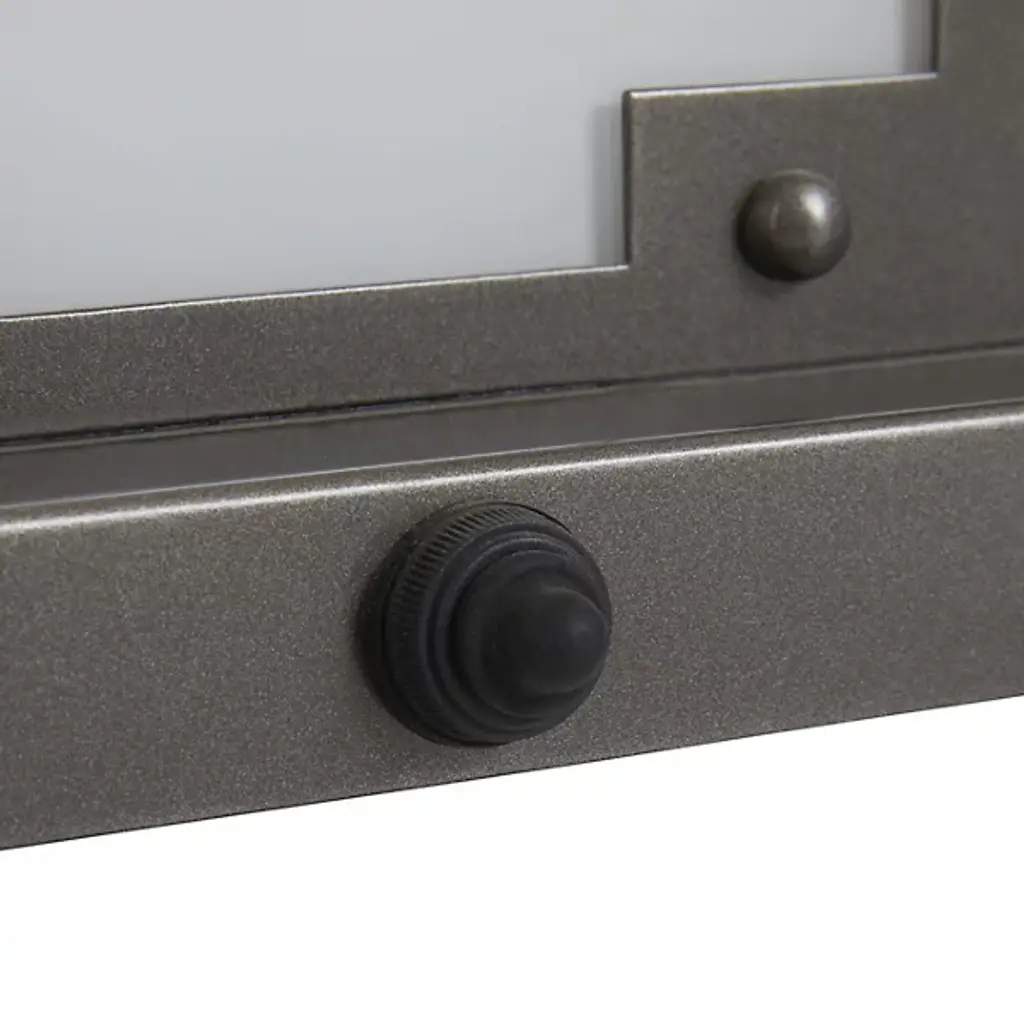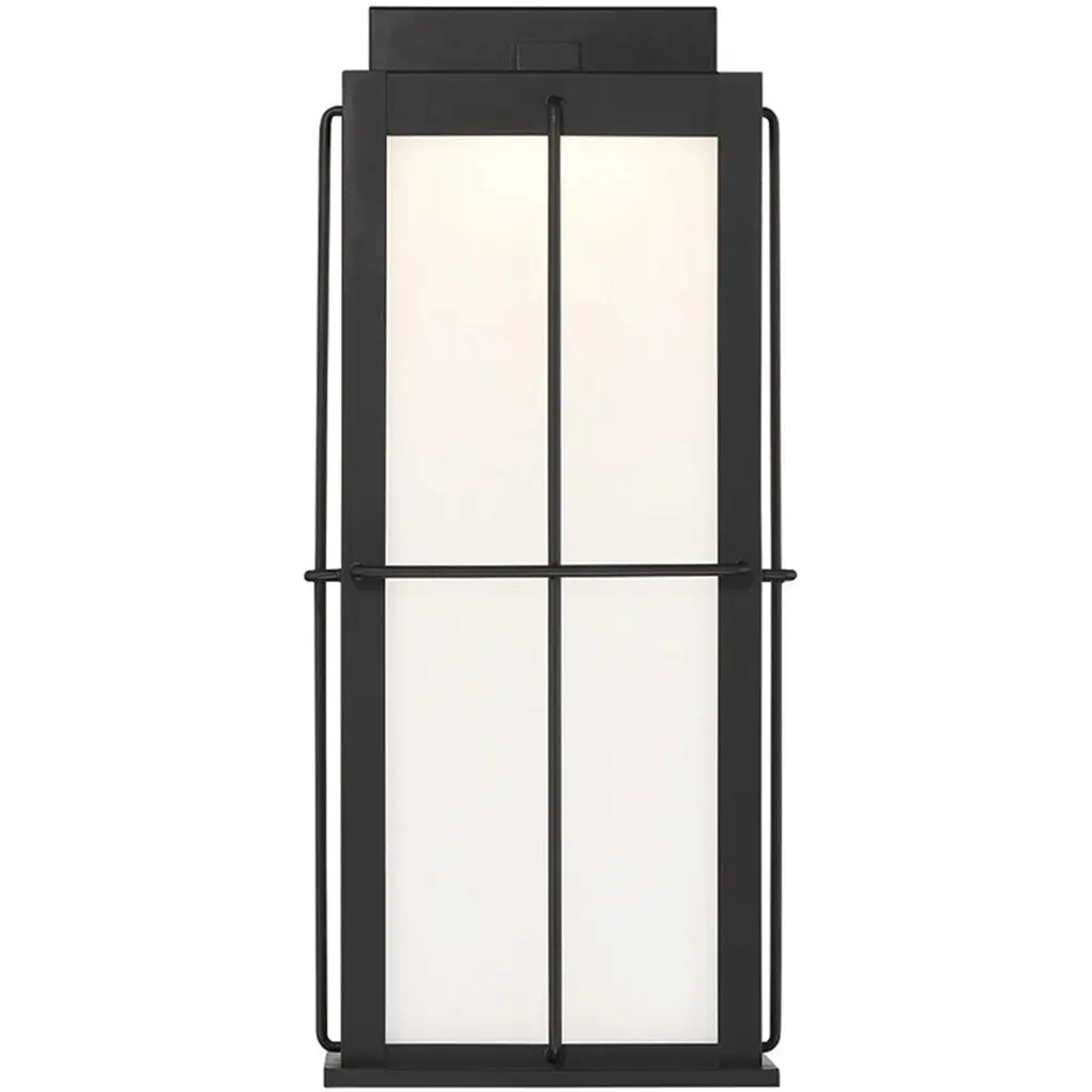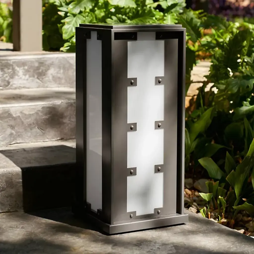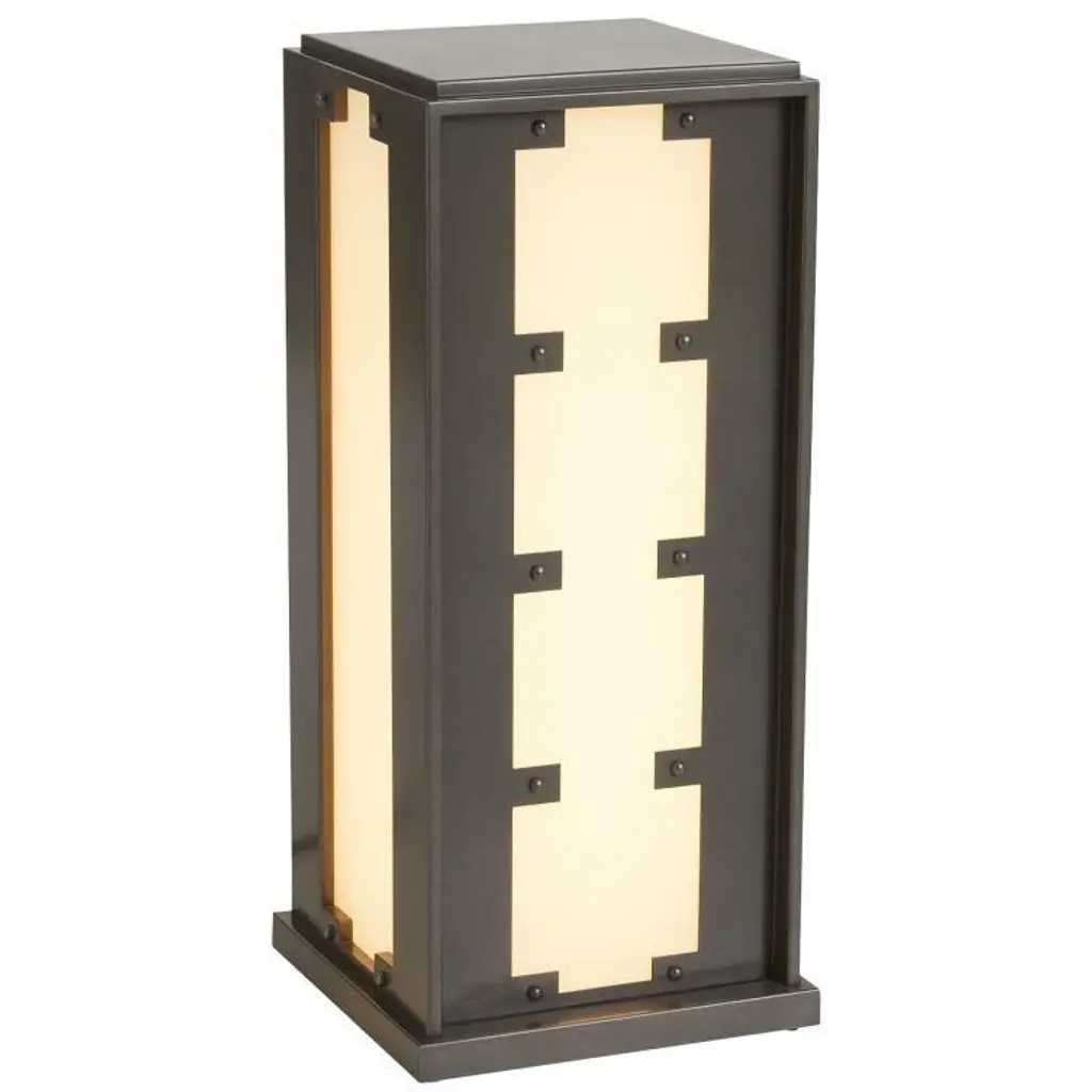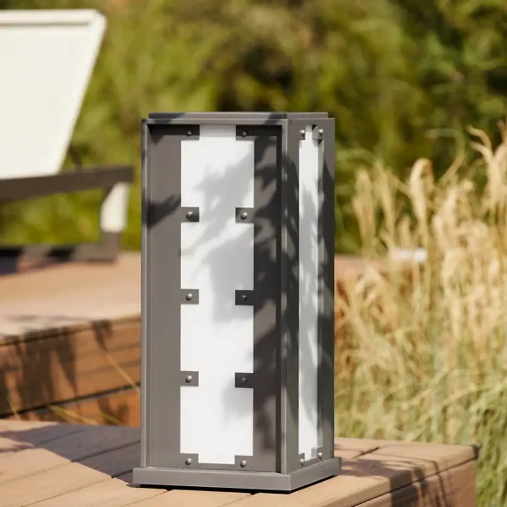 The Corbin Outdoor LED Floor Lamp from Arteriors offers a fresh take on traditional industrial design. It features an Art-Deco-inspired frame with small riveted details crafted from marine-grade aged iron and is finished with a protective coating to endure outdoor elements. Cutout accents and rivet details provide sophisticated touches around the inset panels of opal glass, while a triple-coat, marine-grade enamel finish adds strength and style. The wet-listed lamping can function in any environment, while the robust construction and generous, warm light provide a resilient addition to any outdoor space.