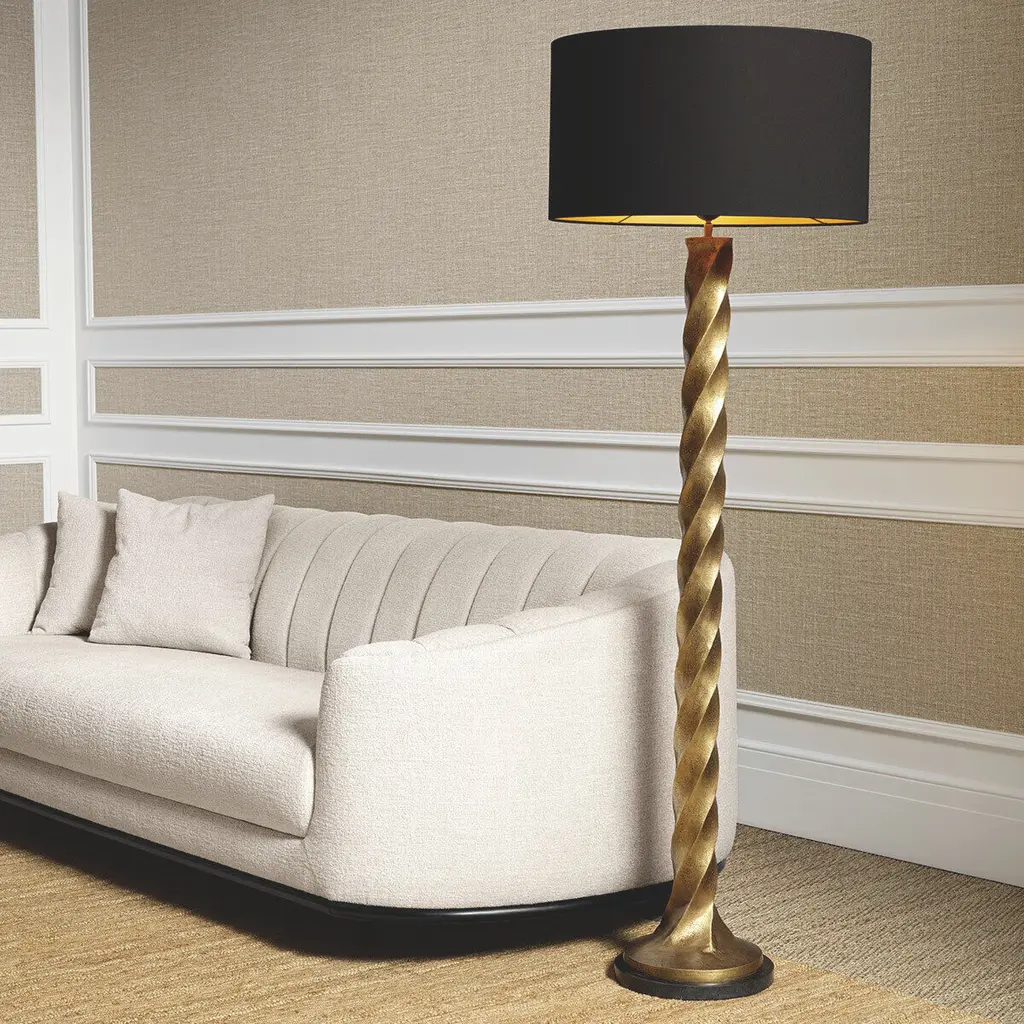 Discover the Eichholtz Costanza Floor Lamp, designed to add elegance and ambience to any room. This timelessly stylish floor lamp features a beautiful black granite base â a unique and luxurious material durable enough to withstand the test of time. The casted aluminium and vintage brass finish are paired with a minimalist black fabric shade for effortless charm. This impressively large piece looks right at home in the corner of a large room or hallway.