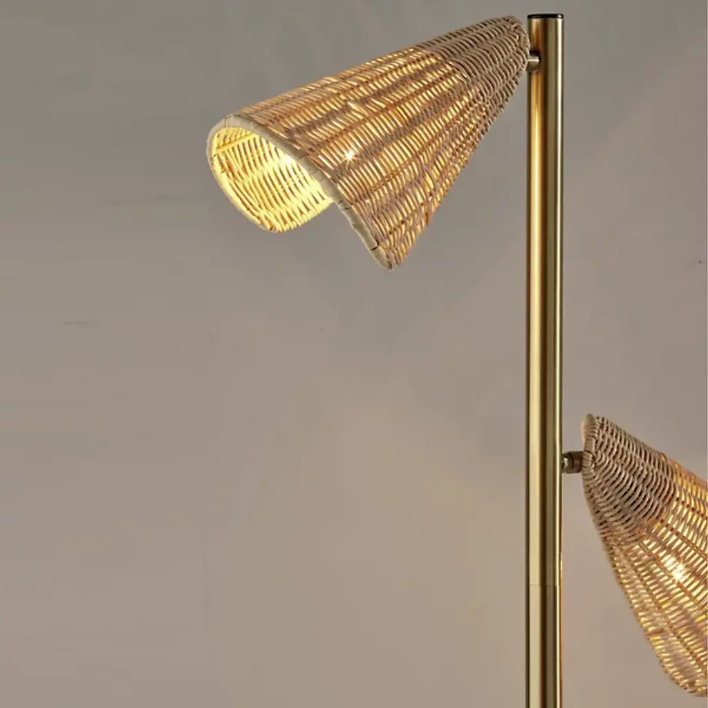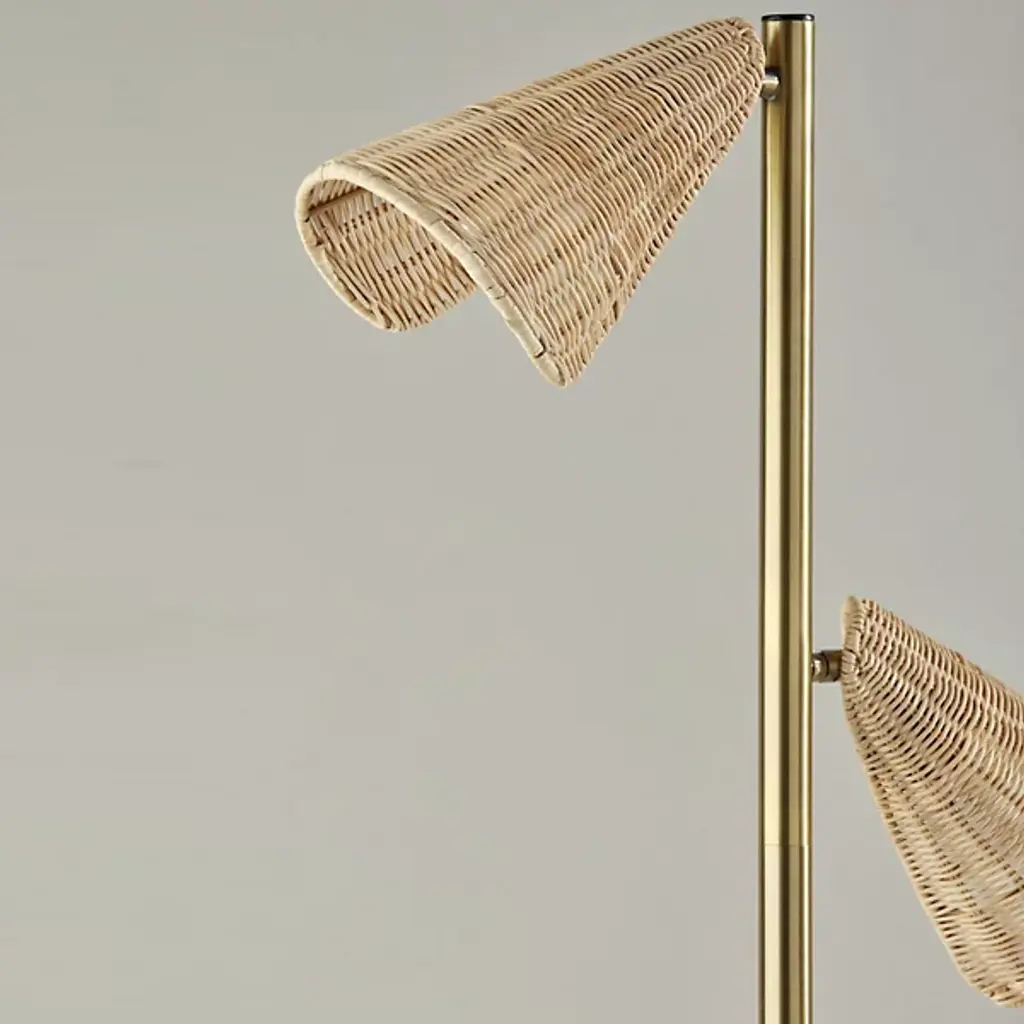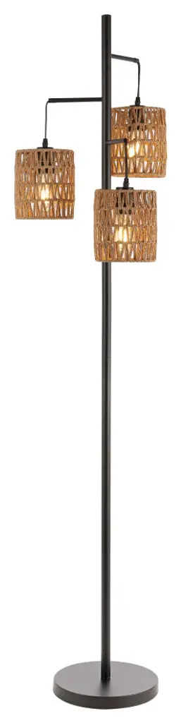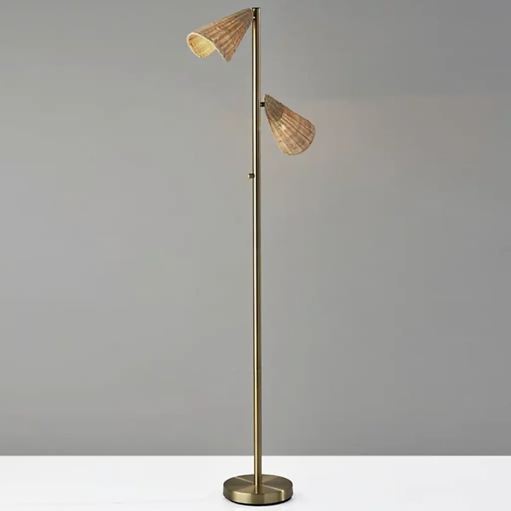 Featuring a blend of natural and contemporary elements and style lines, the Cove Tree Lamp by Adesso adds a distinctive look to your room. The round metal base and matching thin stem in clean lines complement contemporary or modern chic décor. The stem features two lights at staggered heights and directions, each with a hood-shaped shade fashioned of natural rattan material. The base of both shades includes an articulation point, allowing you to rotate the shades up or down and side to side to direct the light wherever it is needed.