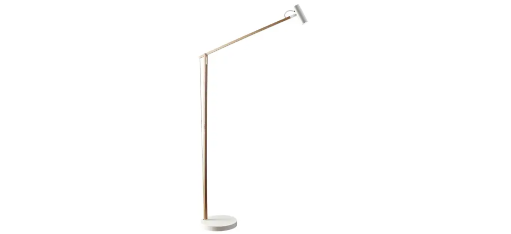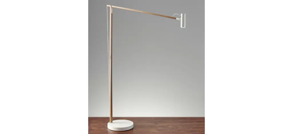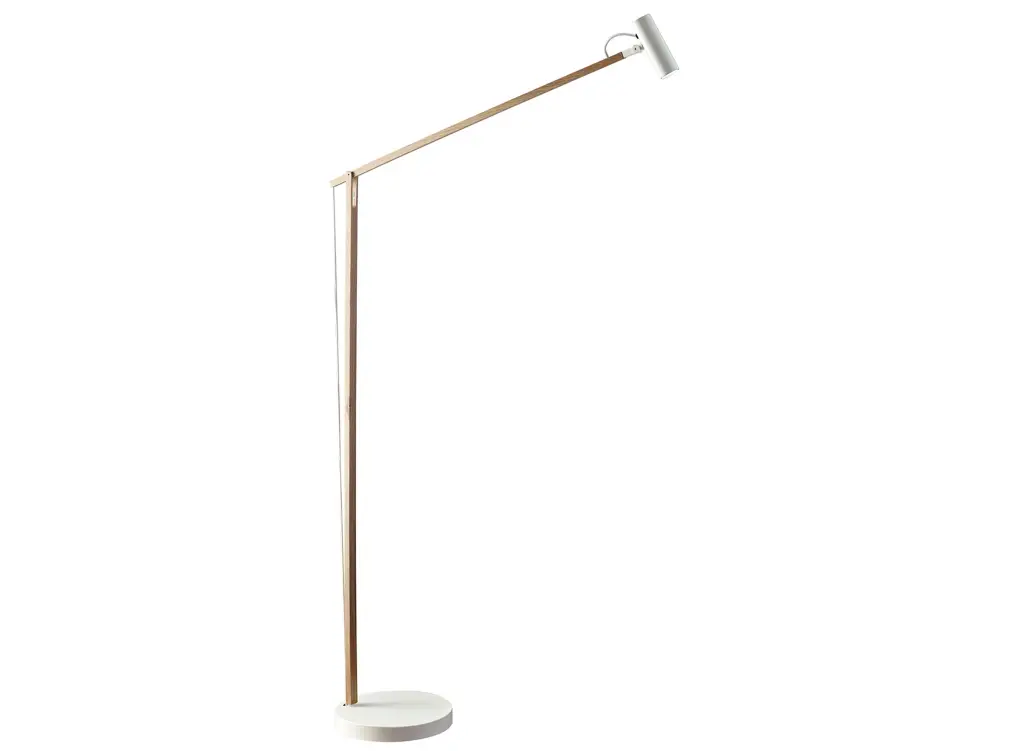 A flexible task light, the Crane Floor lamp has a long, natural solid wood arm that is easy to adjust in height and rotation. The contrast between the natural wood and smooth accents creates a unique component to the soft aesthetic. The Crane makes use of its fabric covered cord and a special spring hidden inside the lamp base to balance at any angle you choose to pose it. With the height adjustment and rotation components located in the base, the clean, sparse design is uninterrupted. The light source is equally spare, a small but powerful, energy-efficient 5 Watt LED light source; the simple 4-way touch dimmer switch is located at the end of the shade. The included 5W LED produces 520 lumens of warm light (3,000K at 80 CRI) and is rated to last over 30,000 hours.