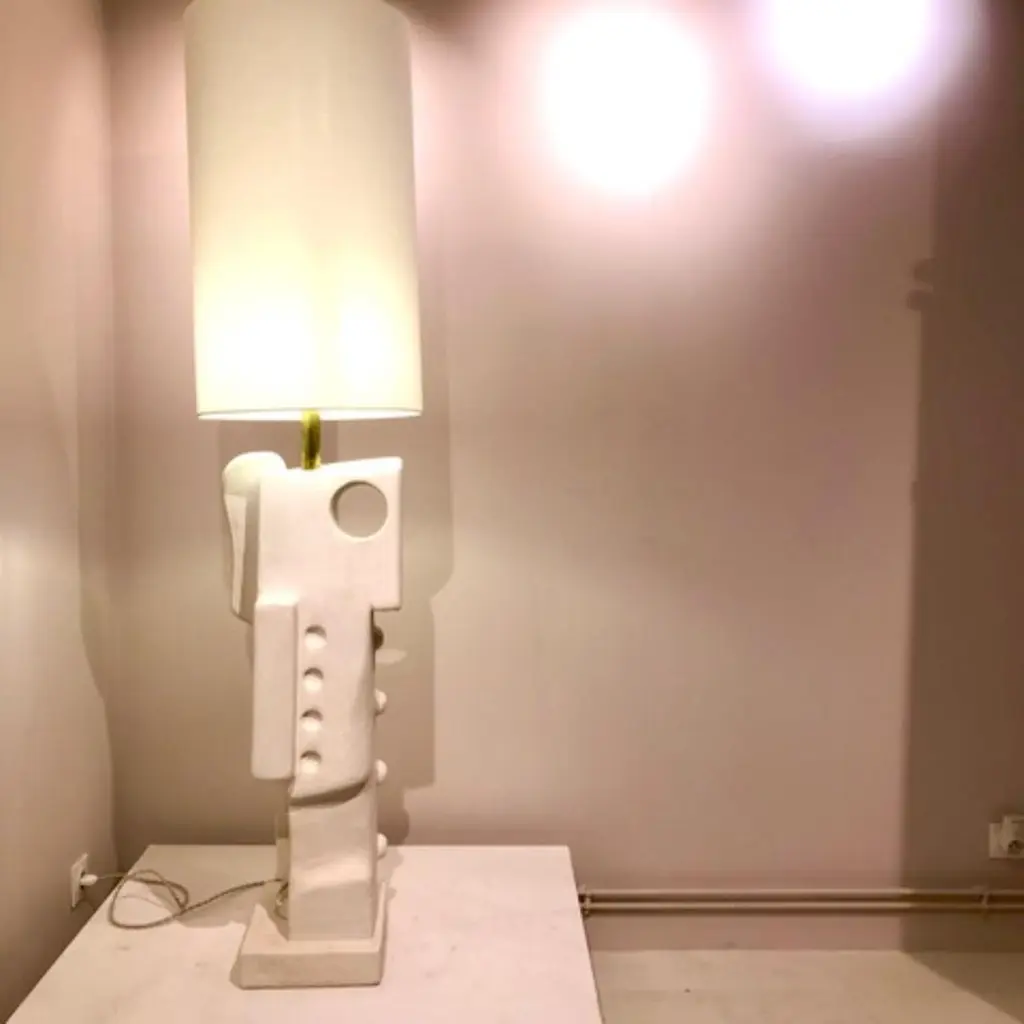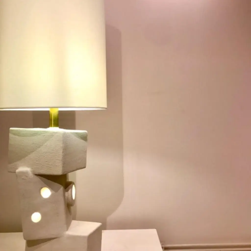 Clay Floor Lamp by Frederic TexierDimensions: W 32 x D 26 x H 172 cm. Materials: Concrete coated with lime and cement Metal part : brass Lampshade : linen. Color: Clay.Artist Frédéric Texier expresses a passion for craftsmanship through his work, using abstract sculpture as an outlet for emotions. Sculpting brutalist and reassuring shapes in concrete blocks left over from renovation sites, Texier creates beauty across unique totems, consoles, floor lamps and candlesticks.All our lamps can be wired according to each country. If sold to the USA it will be wired for the USA for instance.