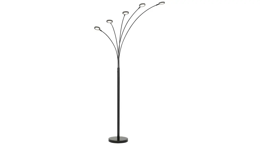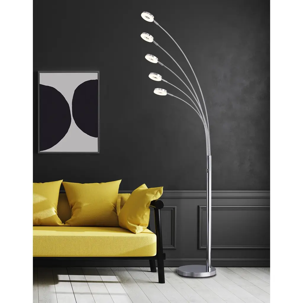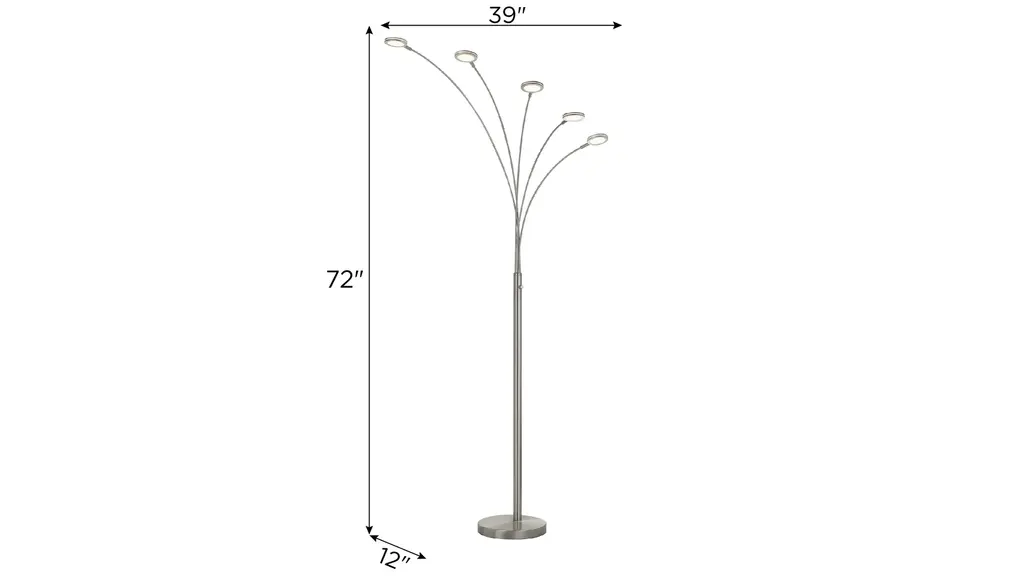 Update your decor with this Cremona LED Arc Floor Lamp. It features a slim pole lamp design, sturdy base and downfacing led light discs. Light has a push dimmer switch on pole for easy access.