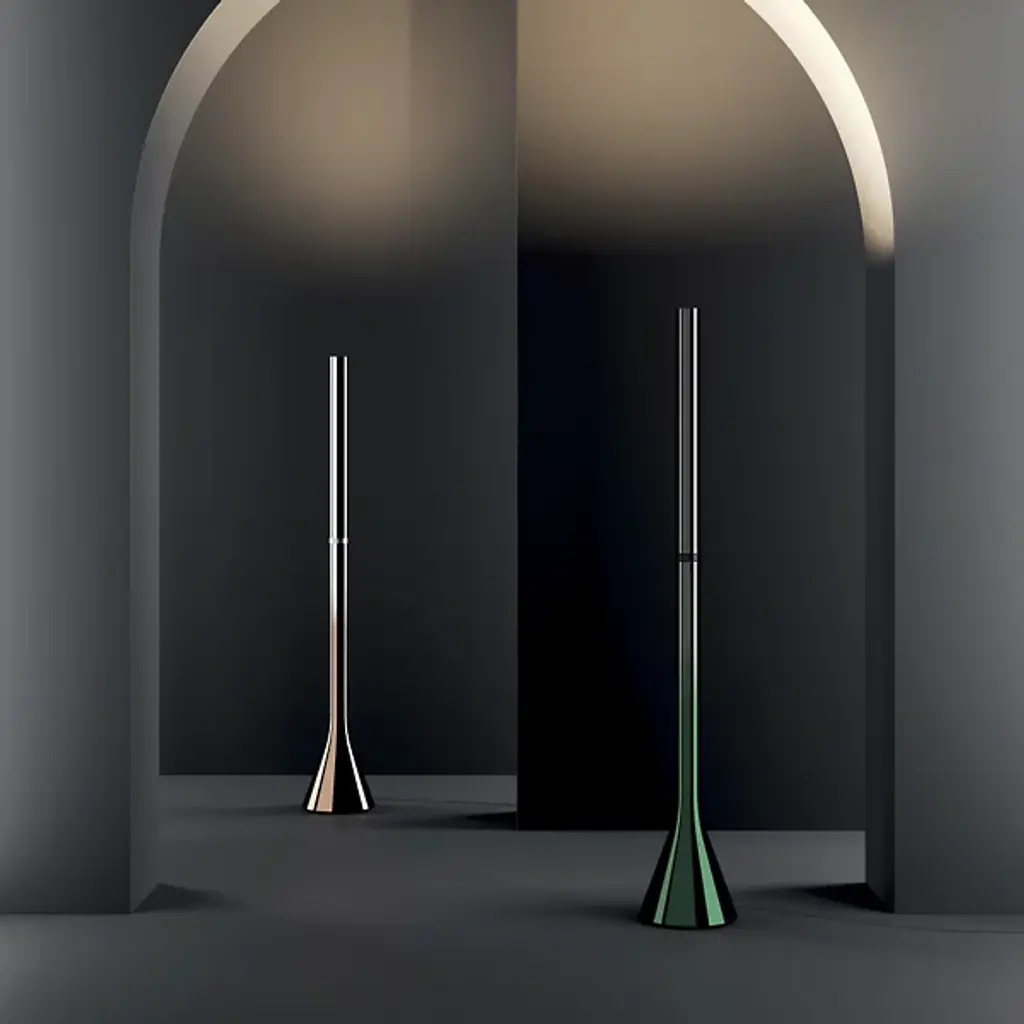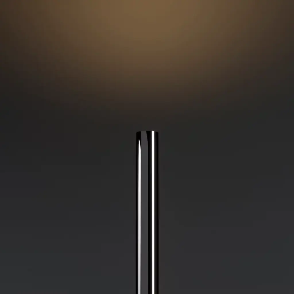 Add a casual contemporary character to indoor living spaces with the sleek and stylish lines of the Croma LED Floor Lamp from LODES. A Luca Nichetto design made in Italy, the robust steel fixture rises in a smooth motion from a clean-surfaced conical base that narrows to a slender cylindrical stem above, divided by a simple, central band. Illumination is provided by a potent LED lamp integrated into the upper end of the fixture, gentled by a translucent diffuser to scatter a softer uplight that reflects from its surroundings, adding sparkling character via the smooth metal structure below.