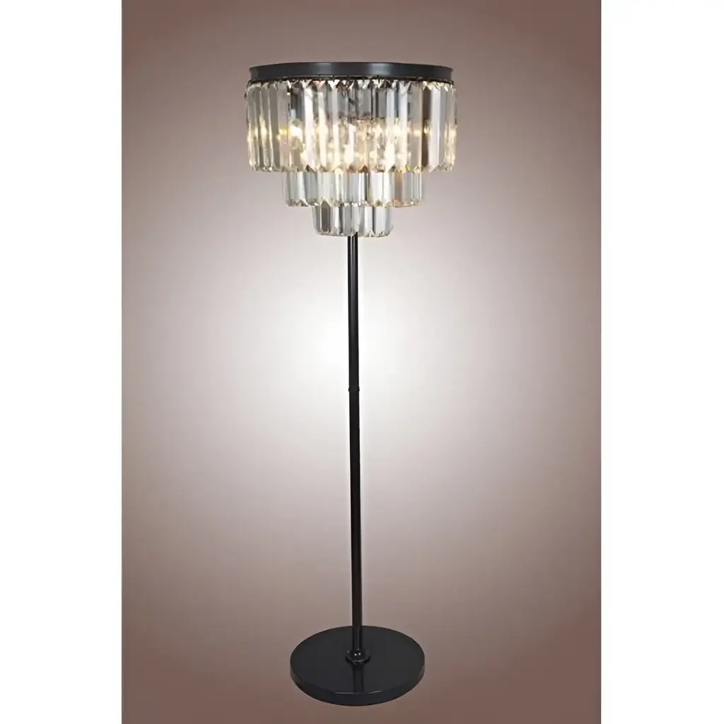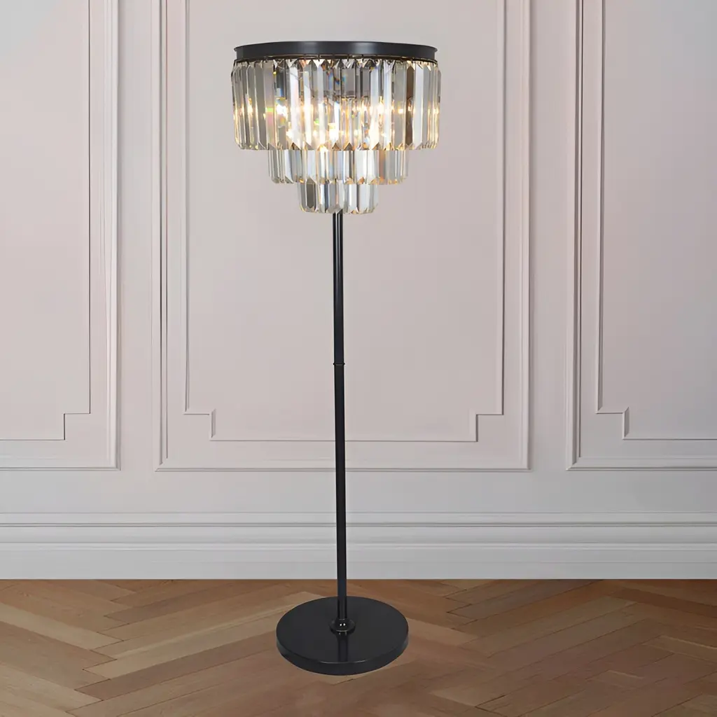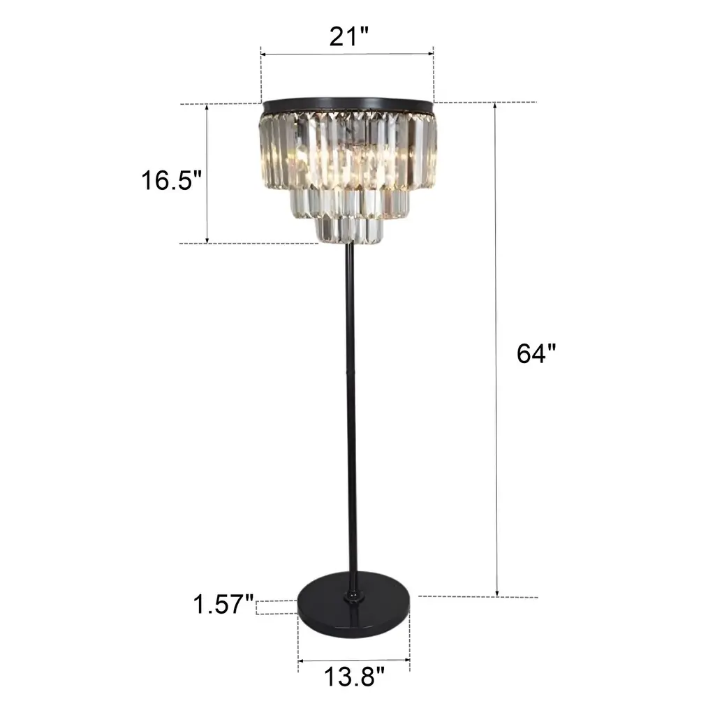 Crystal Luxury Floor Lamp With Chandelier Look, Three Tiers Clear Glass - Black