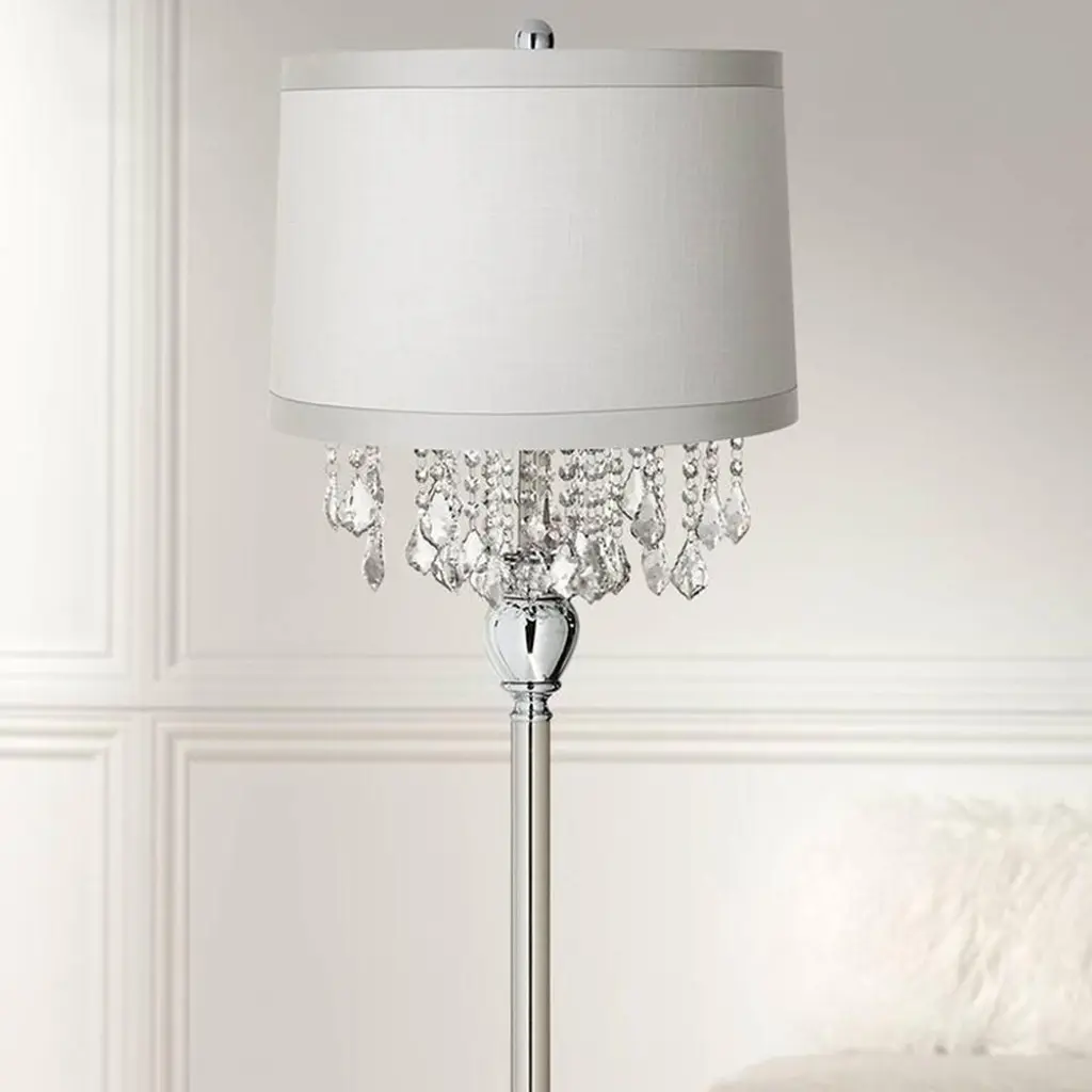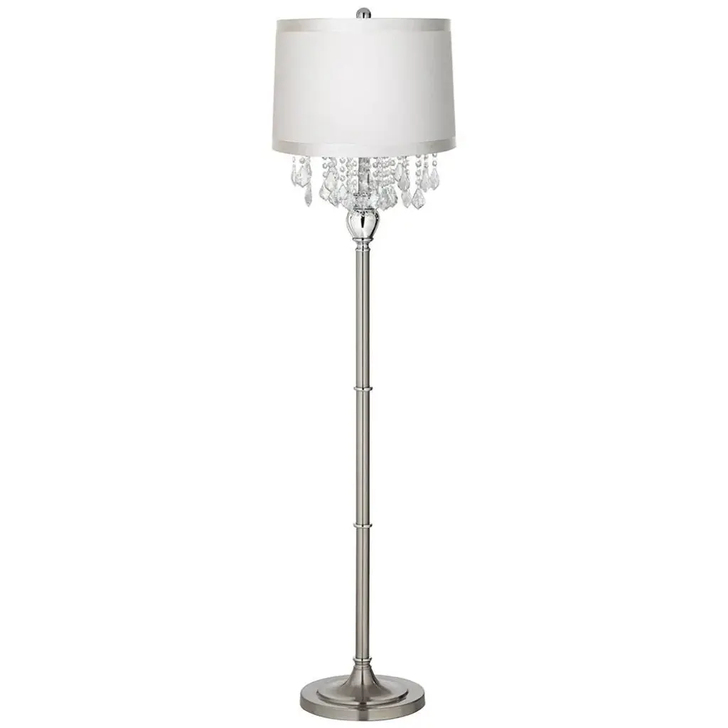 Crystals Modern Floor Lamp 62 1/2" Tall Satin Steel Fabric Drum Shade - 15" X 62" - Silver - 15" X 62"
